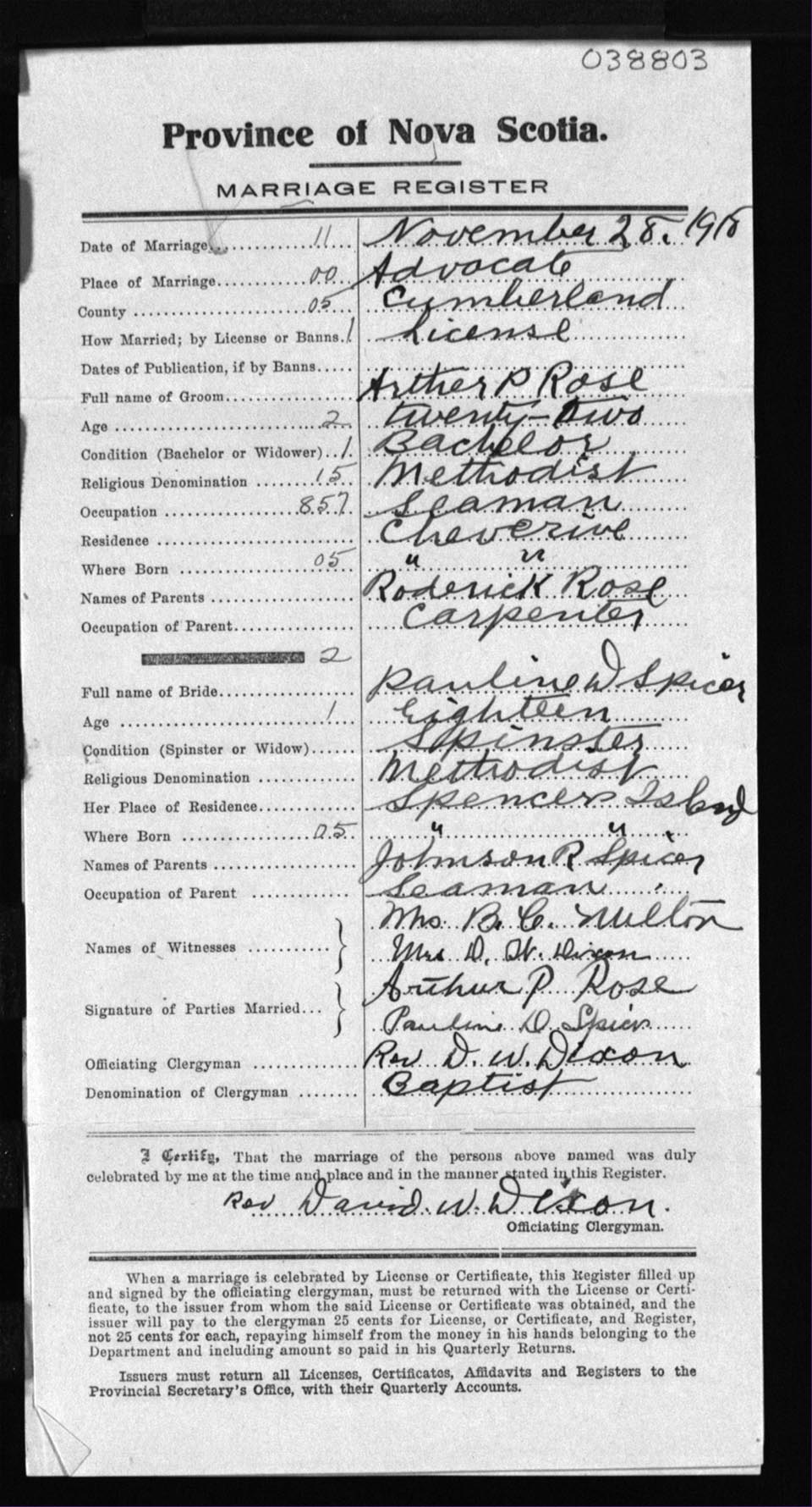 Registration: Year: 1918 number: 38803