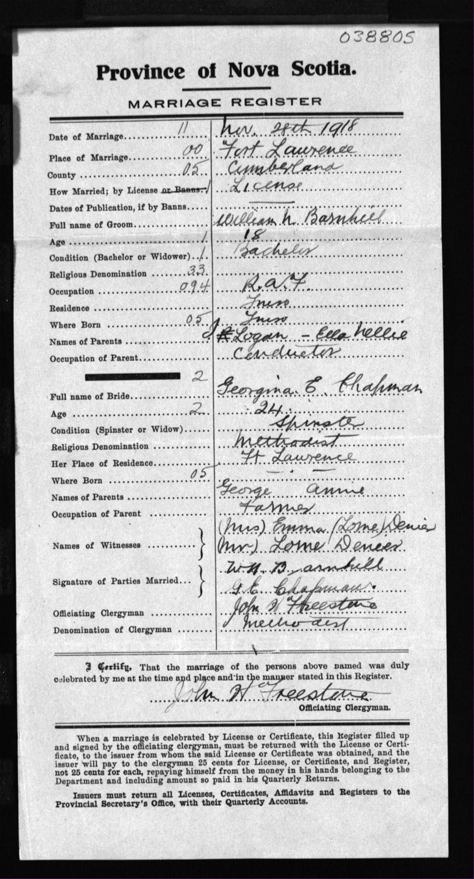 Registration: Year: 1918 number: 38805