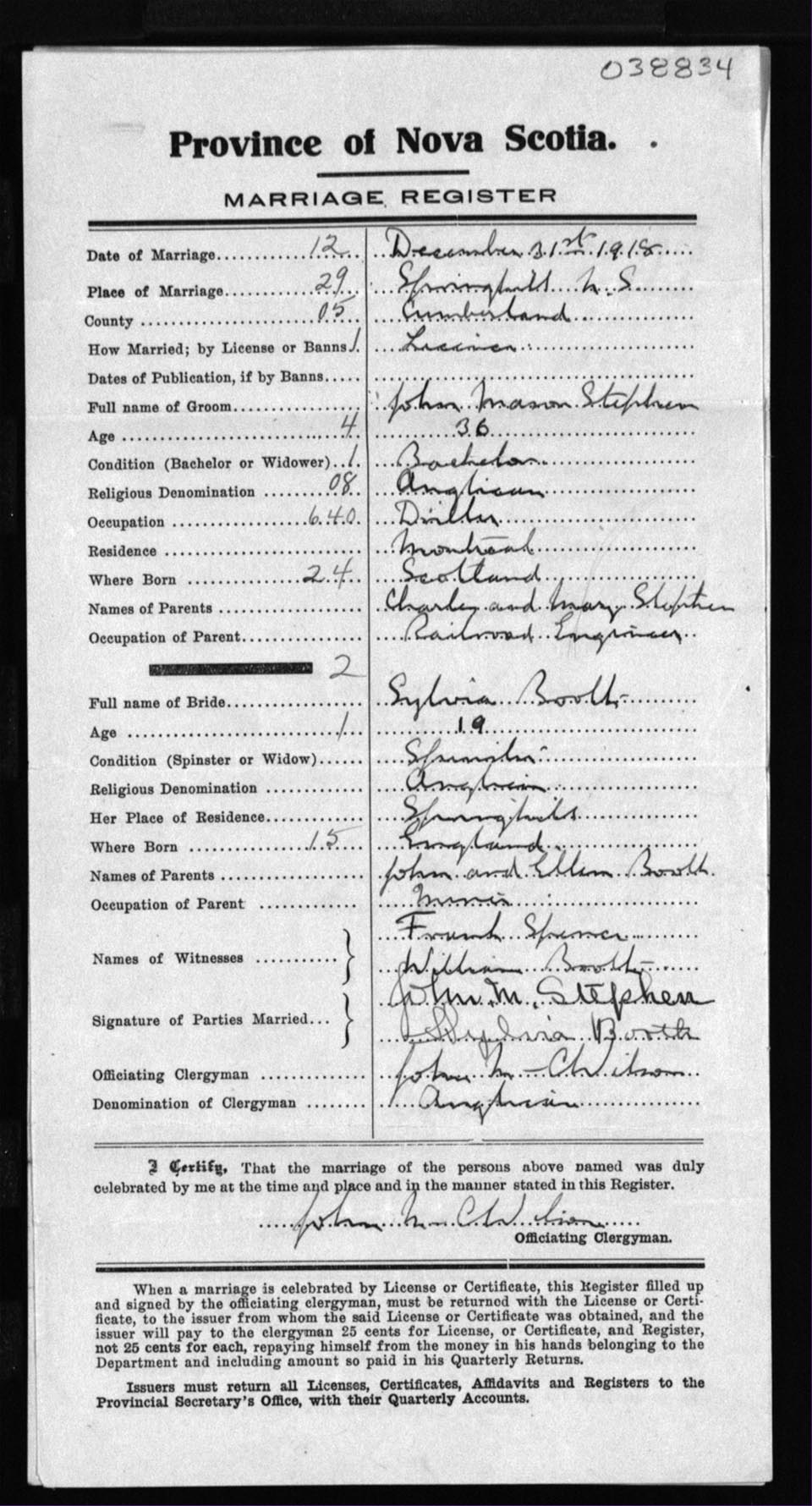 Registration: Year: 1918 number: 38834