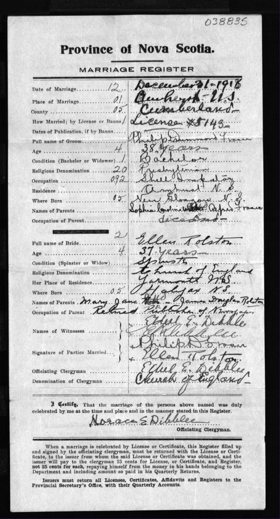 Registration: Year: 1918 number: 38835
