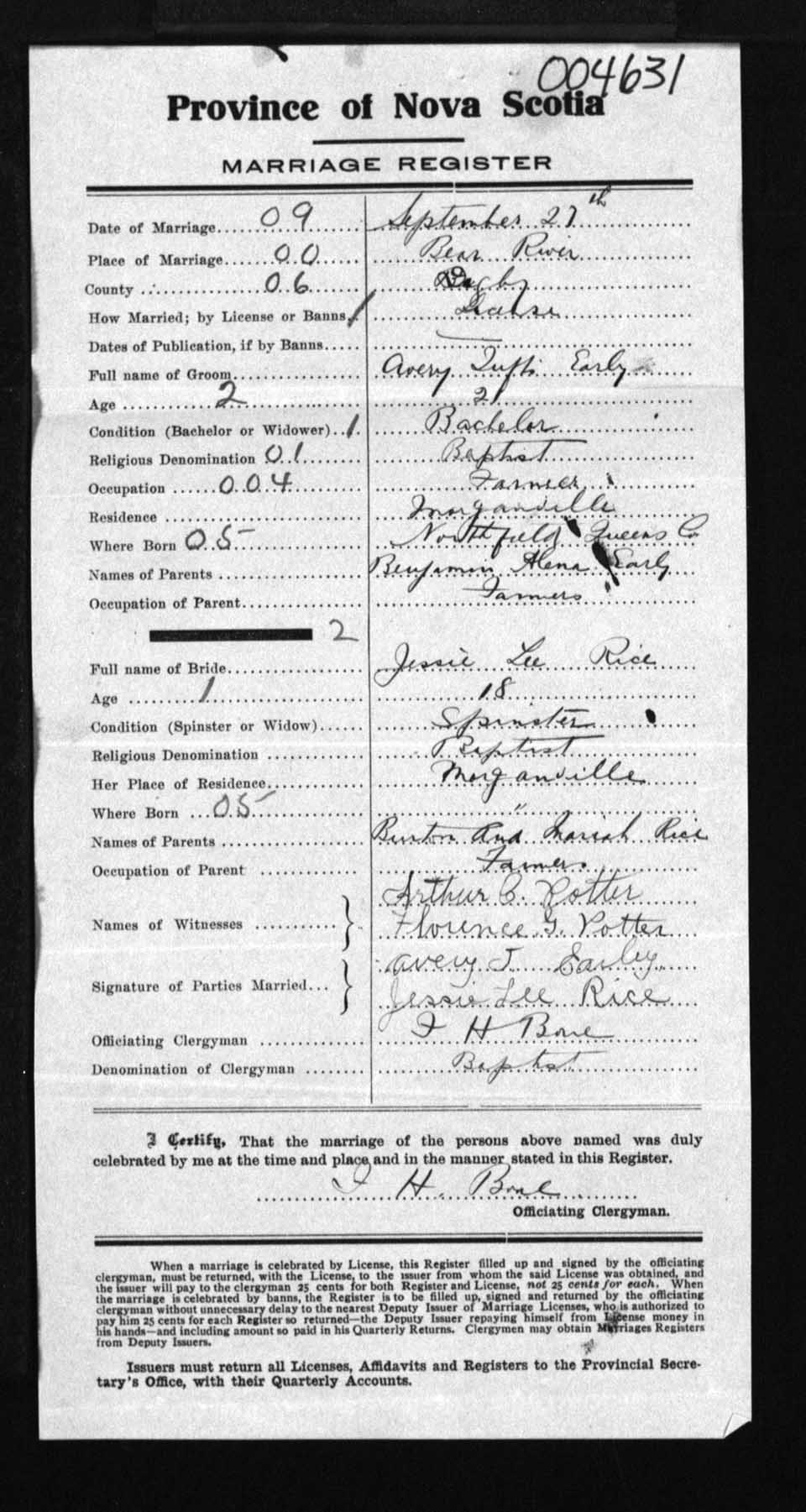 Registration: Year: 1919 number: 4631