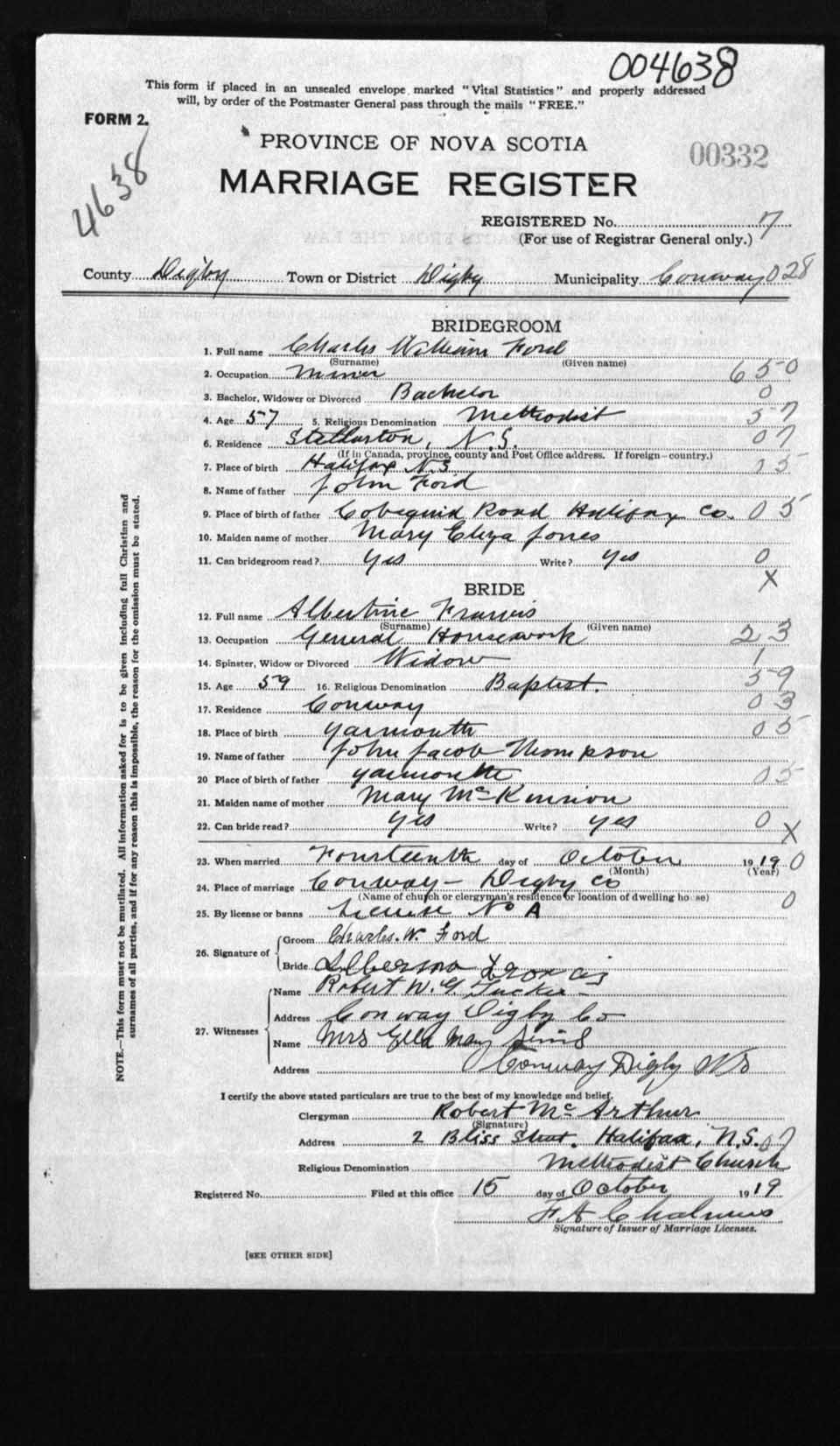 Registration: Year: 1919 number: 4638