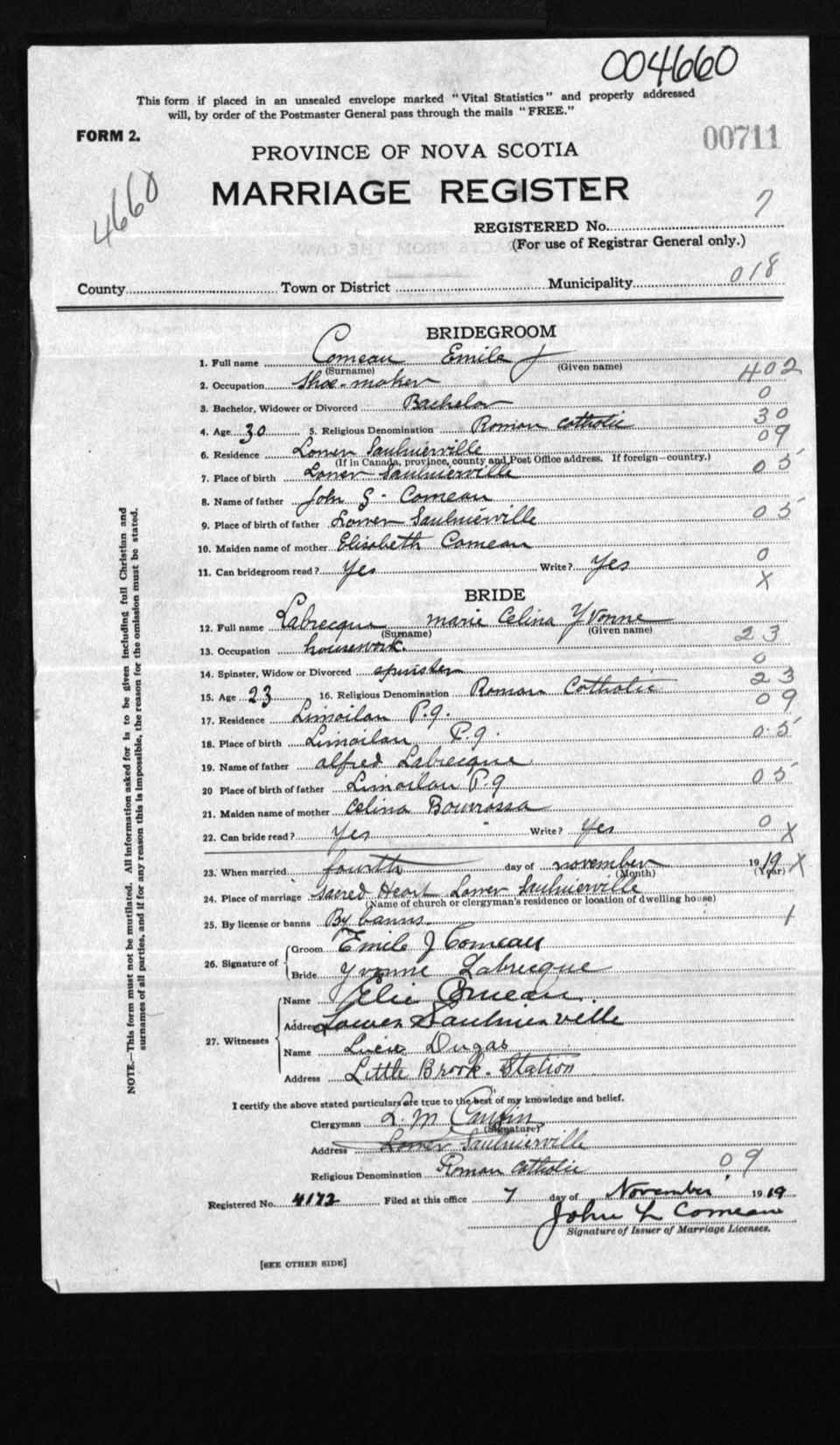 Registration: Year: 1919 number: 4660