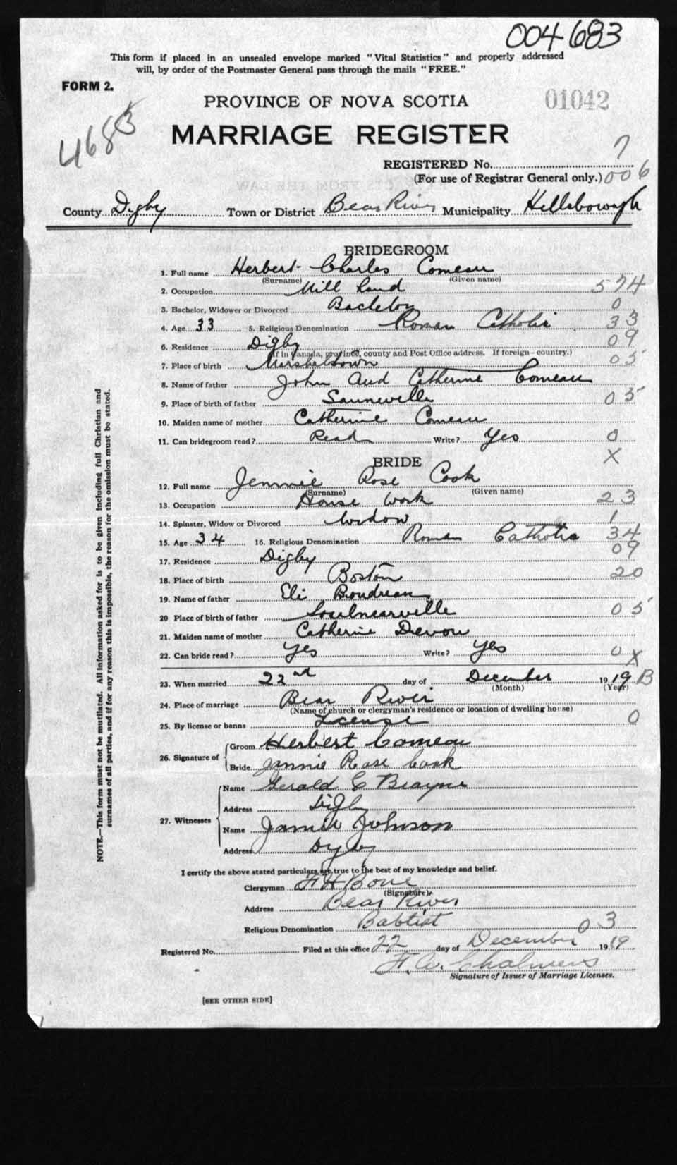 Registration: Year: 1919 number: 4683