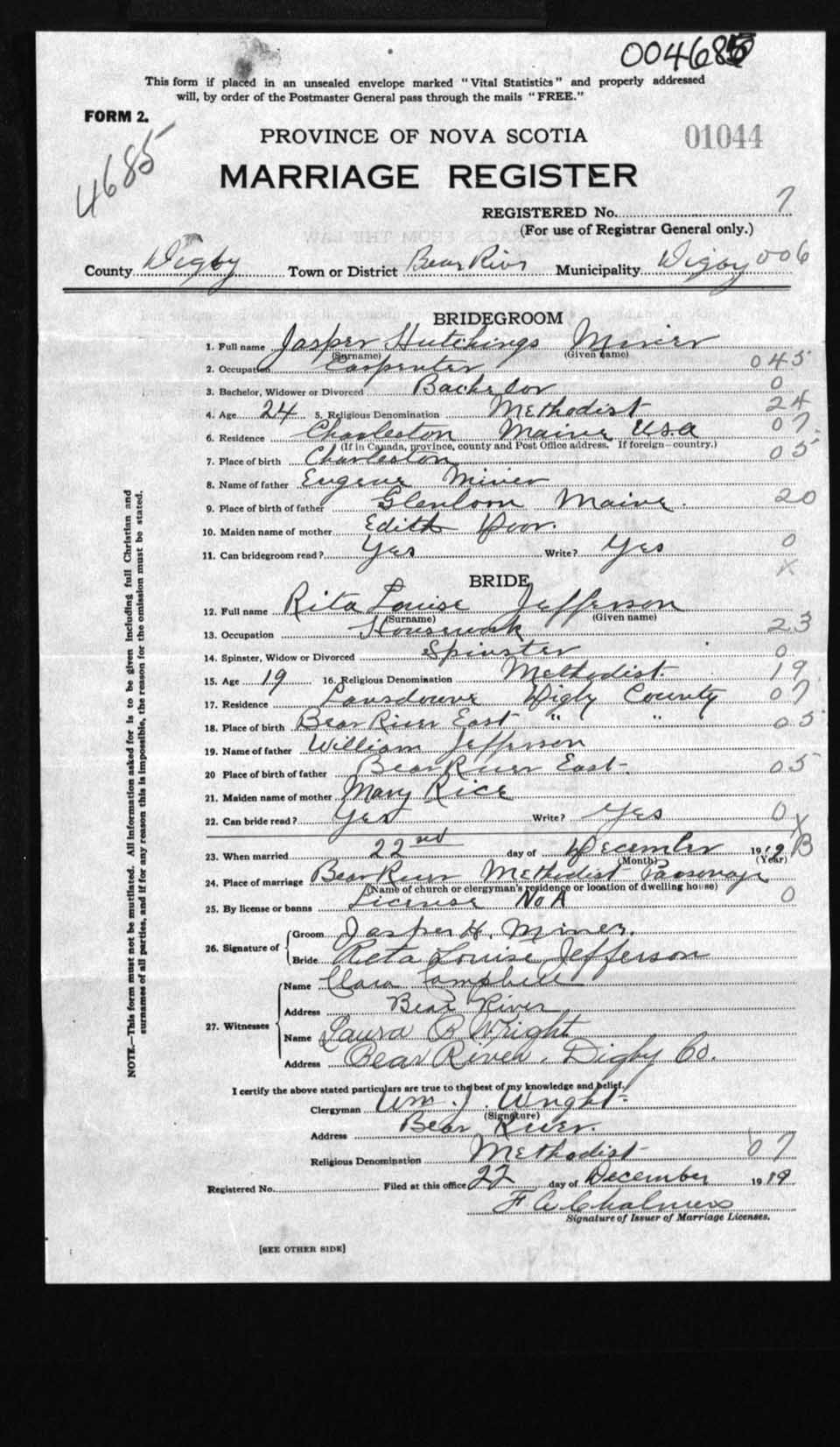 Registration: Year: 1919 number: 4685