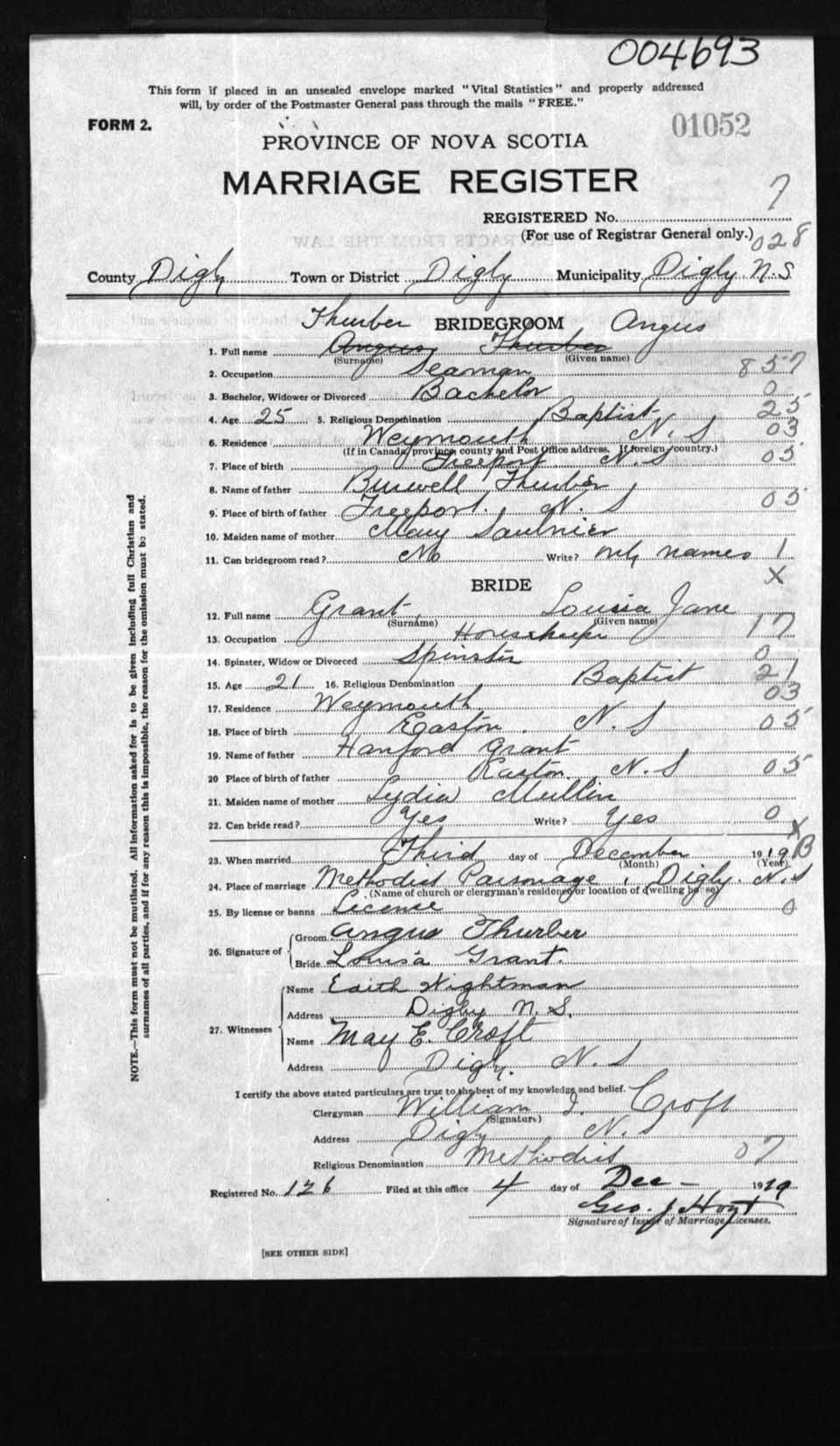 Registration: Year: 1919 number: 4693
