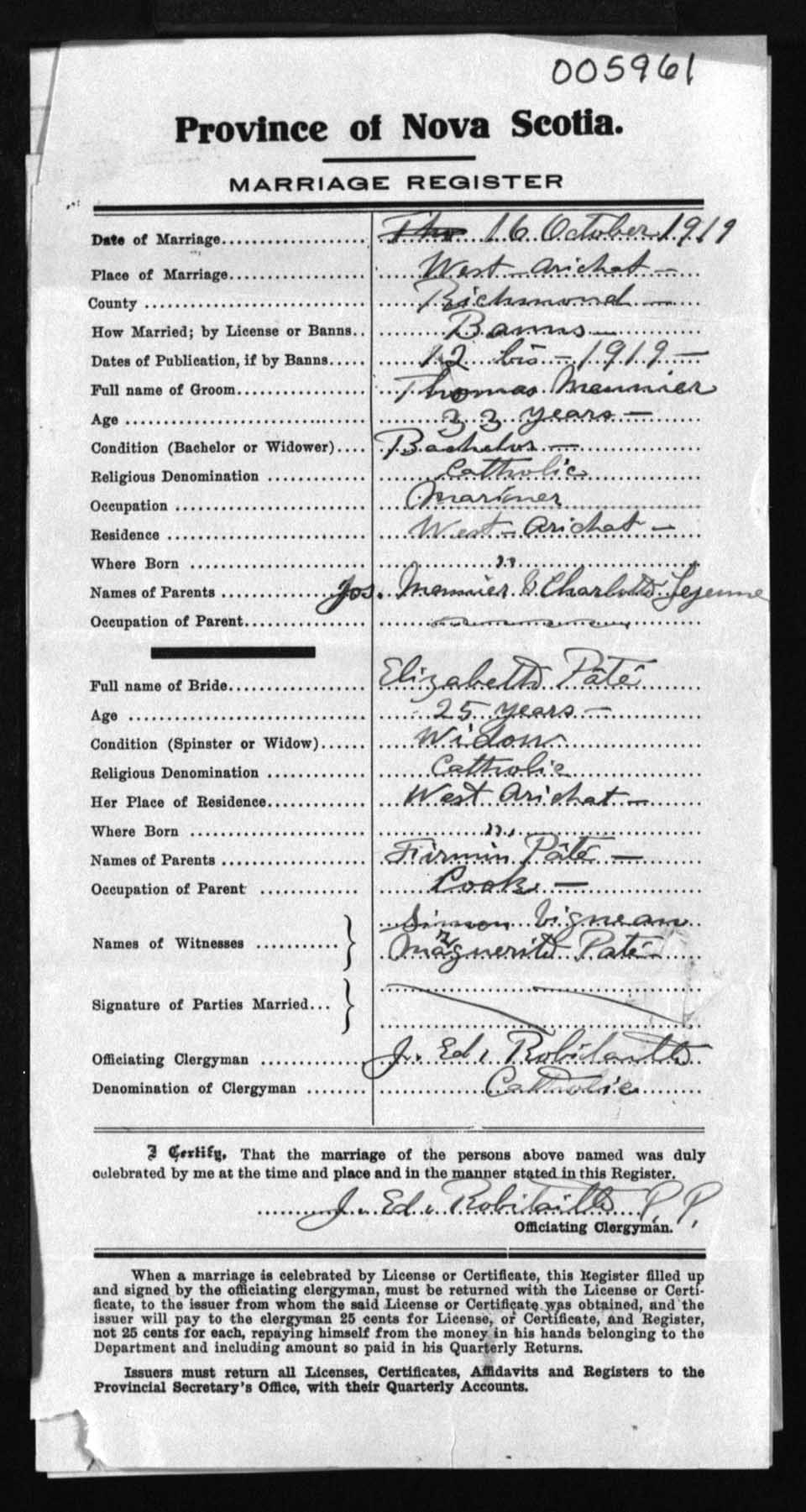 Registration: Year: 1919 number: 5961