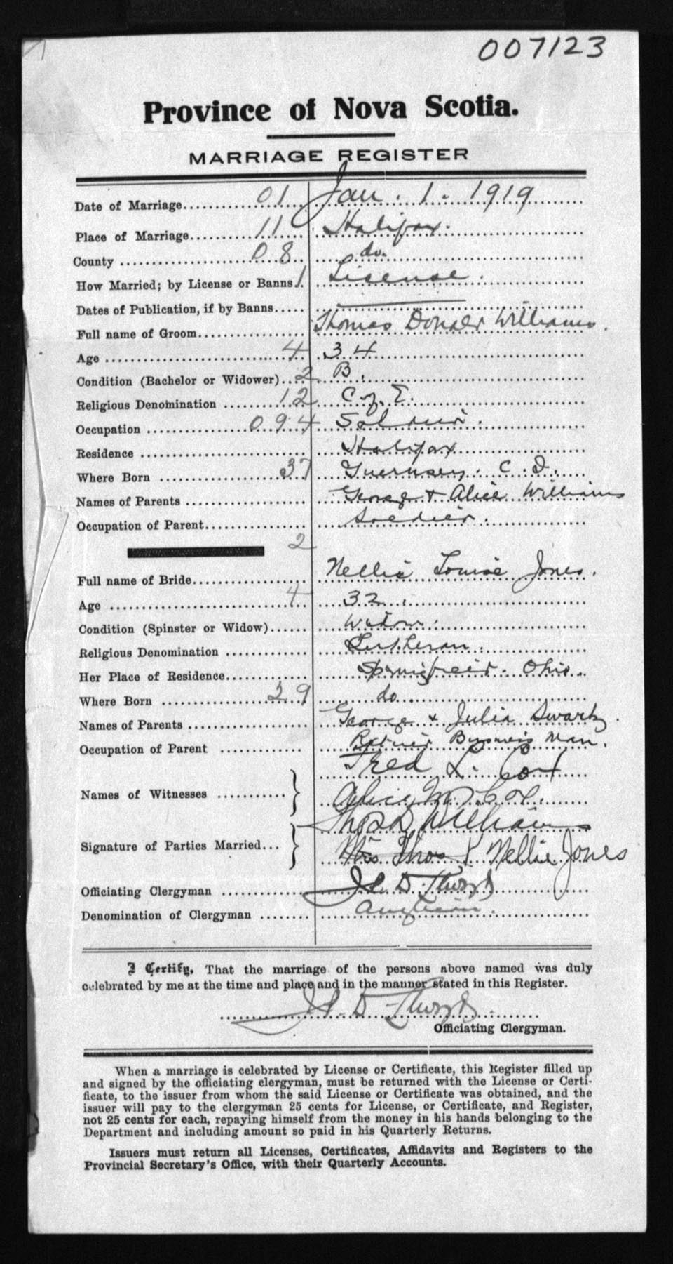 Registration: Year: 1919 number: 7123