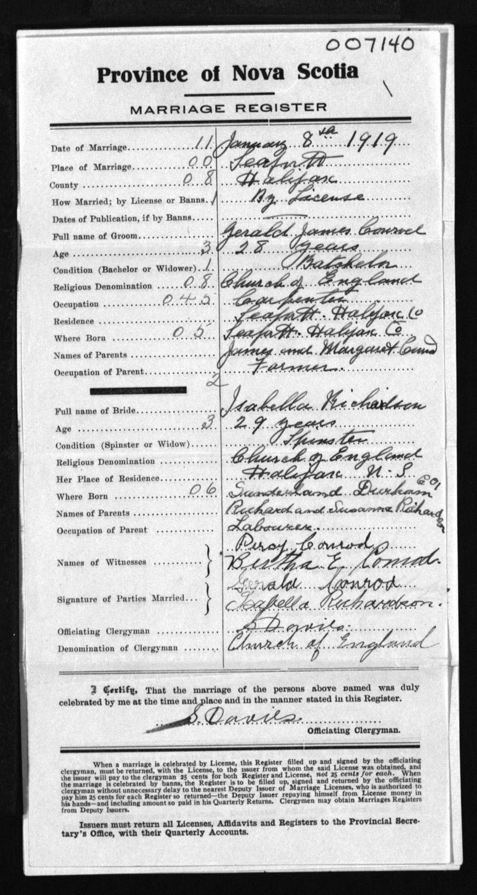 Registration: Year: 1919 number: 7140
