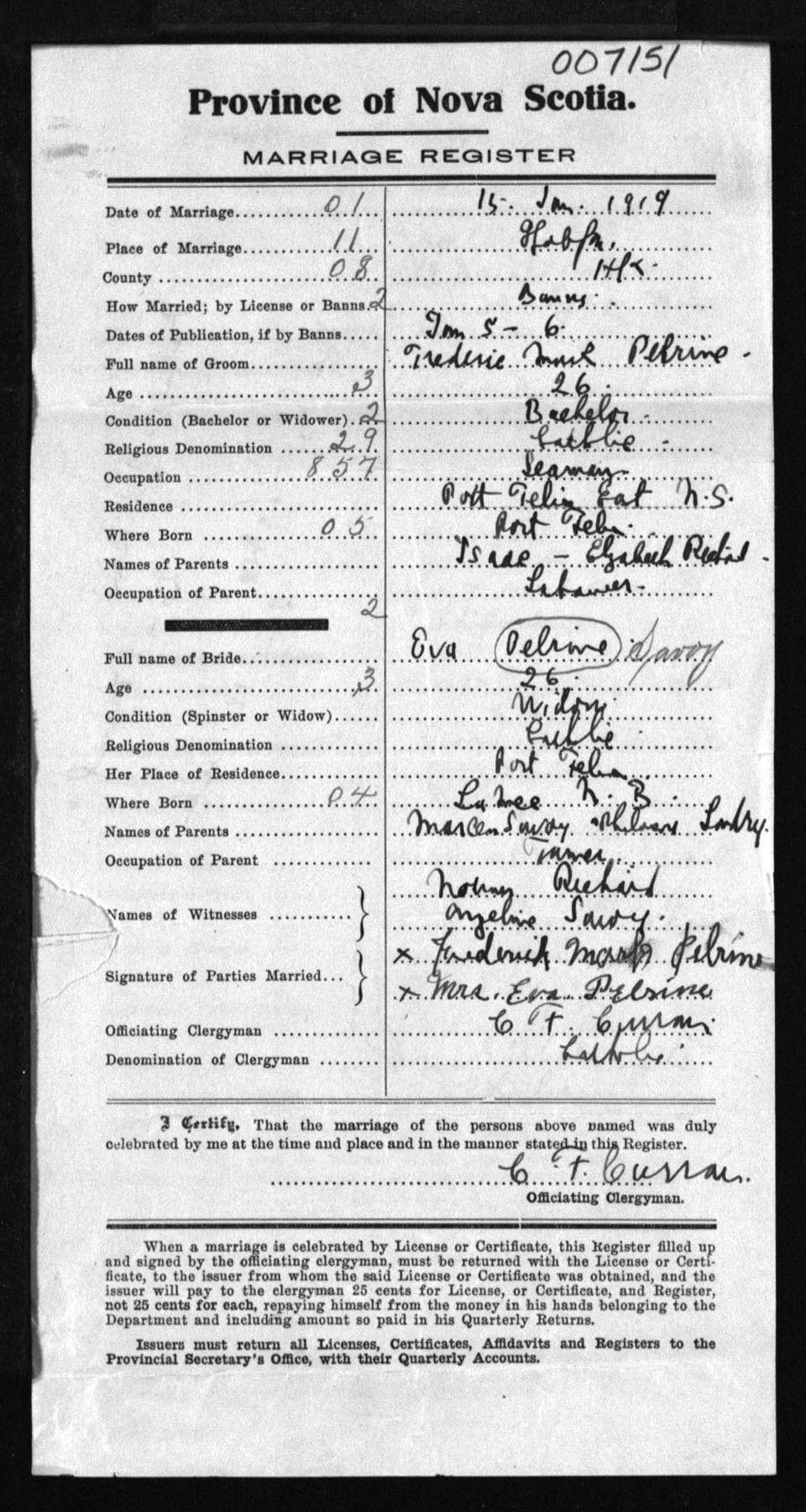 Registration: Year: 1919 number: 7151