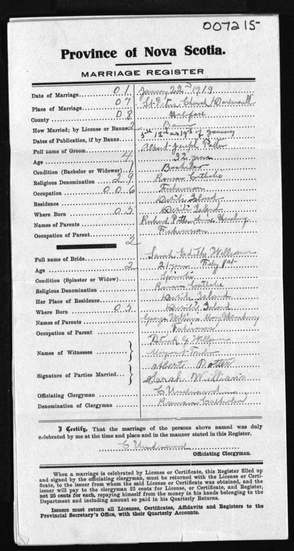 Registration: Year: 1919 number: 7215