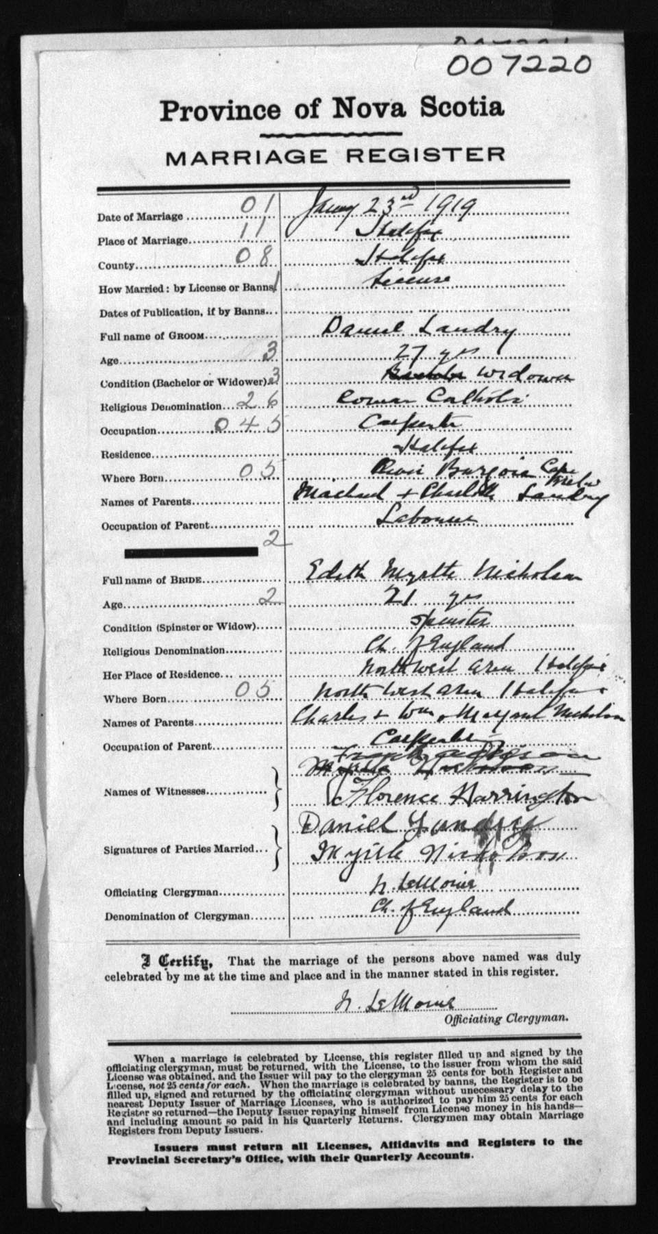 Registration: Year: 1919 number: 7220