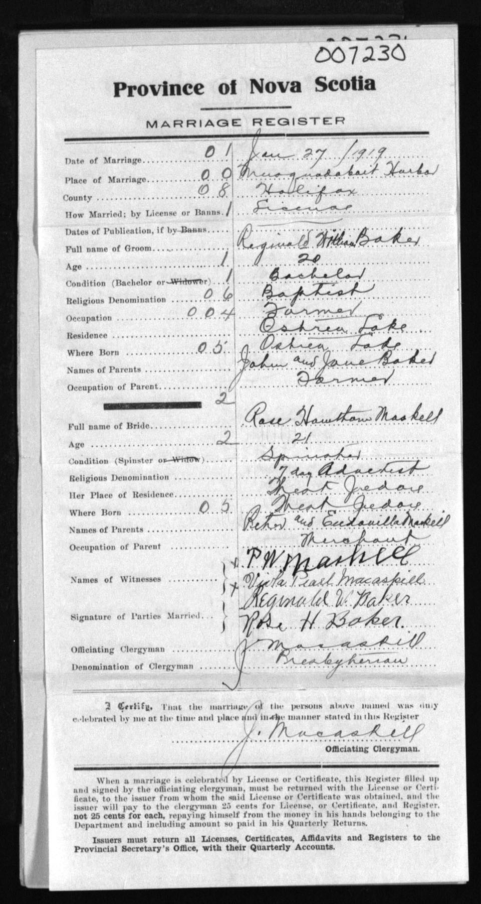 Registration: Year: 1919 number: 7230
