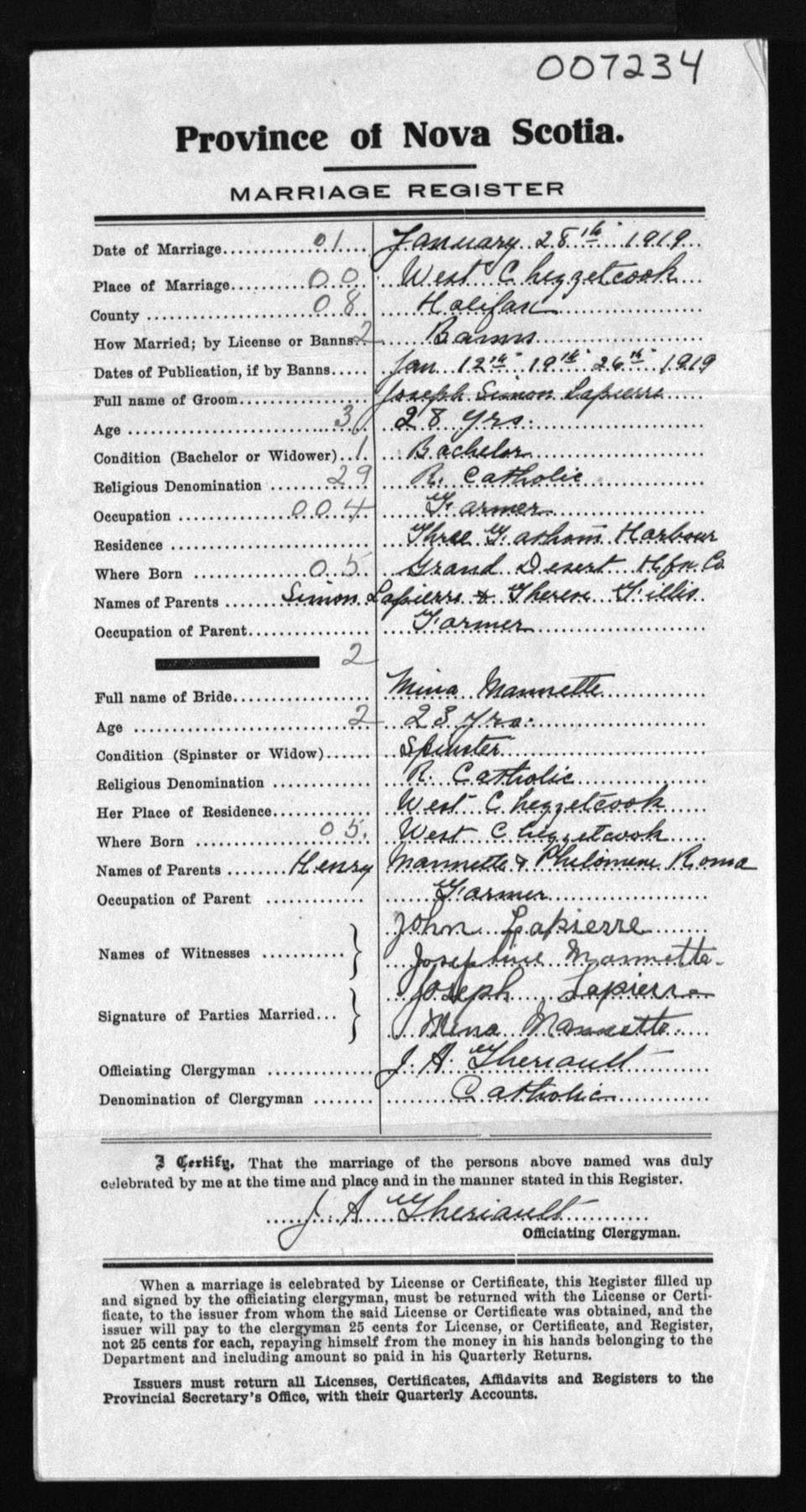Registration: Year: 1919 number: 7234