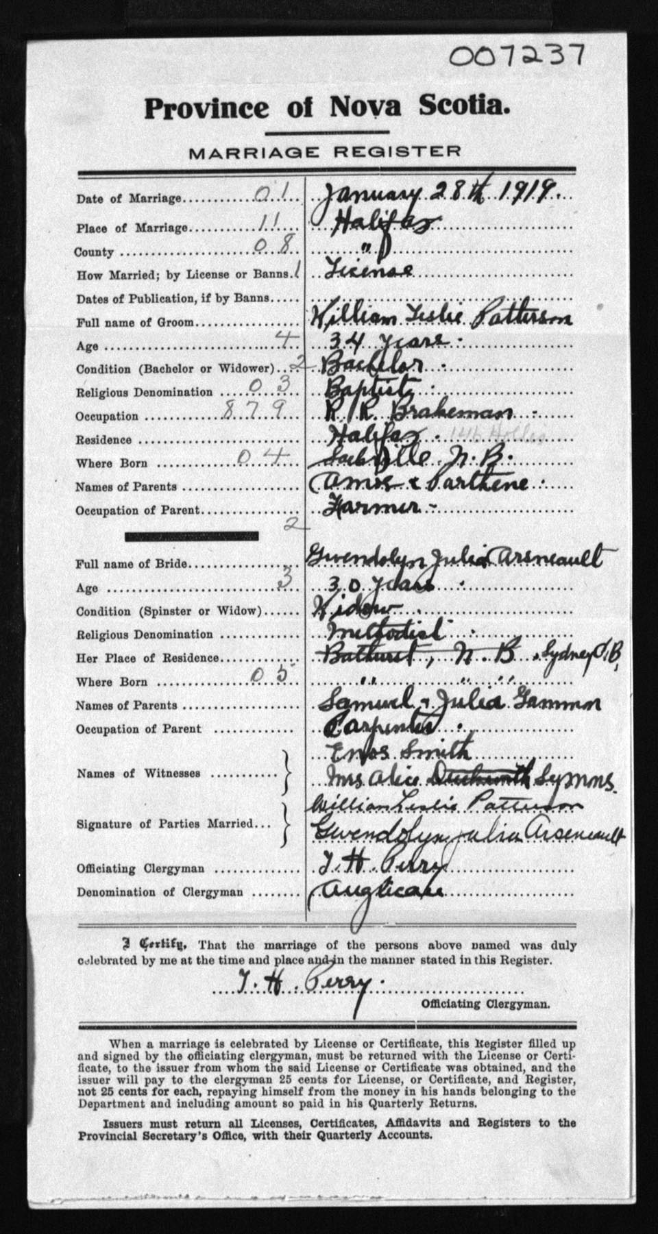 Registration: Year: 1919 number: 7237