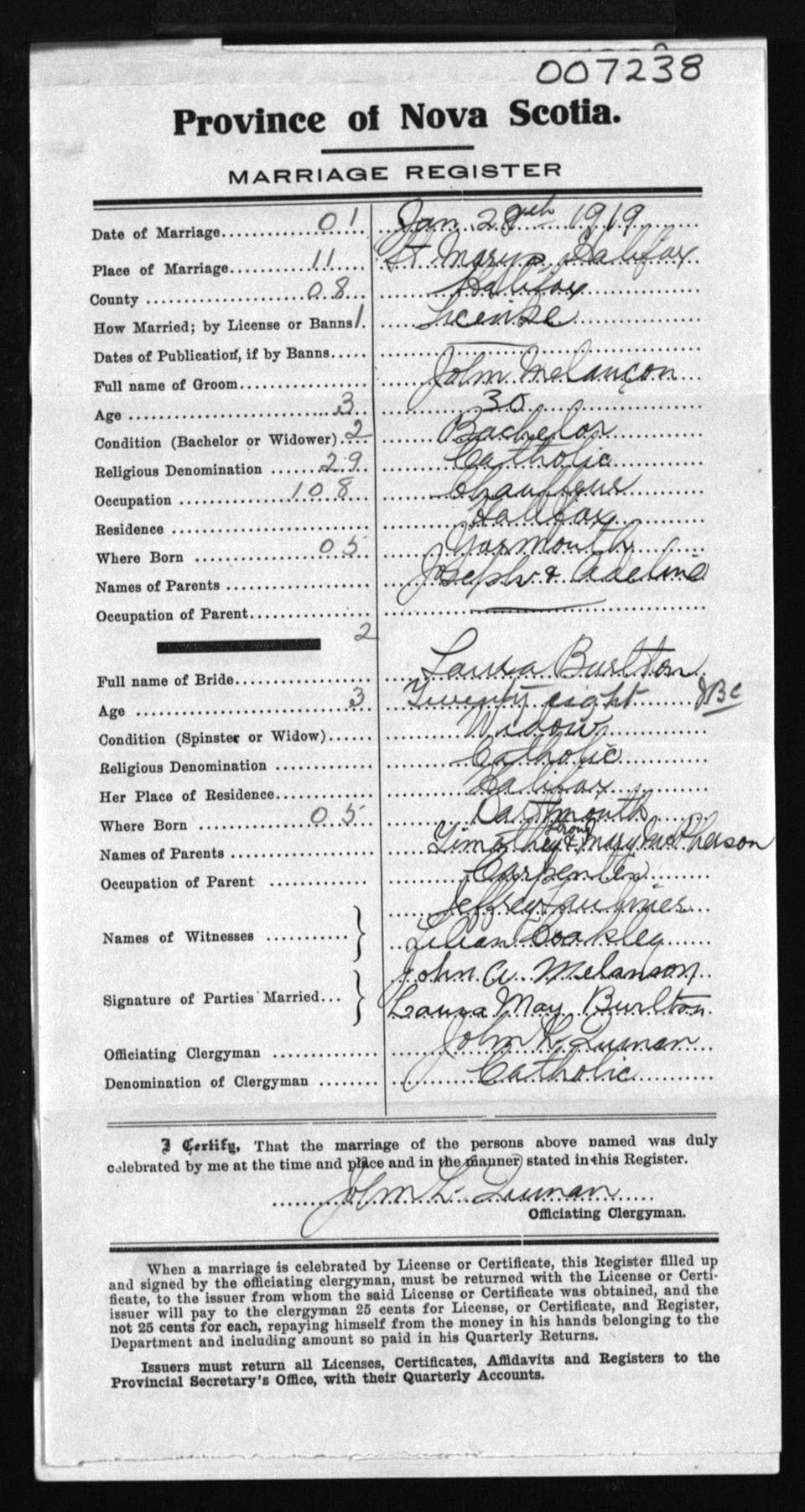 Registration: Year: 1919 number: 7238
