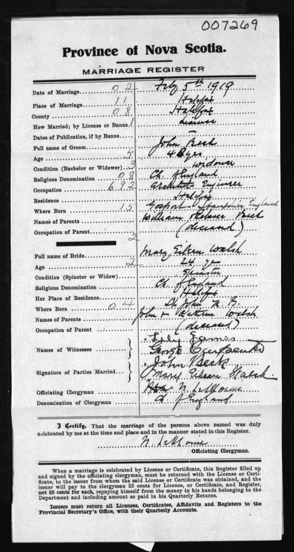 Registration: Year: 1919 number: 7269