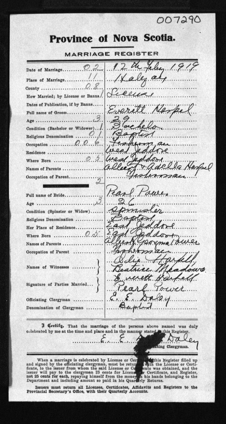 Registration: Year: 1919 number: 7290