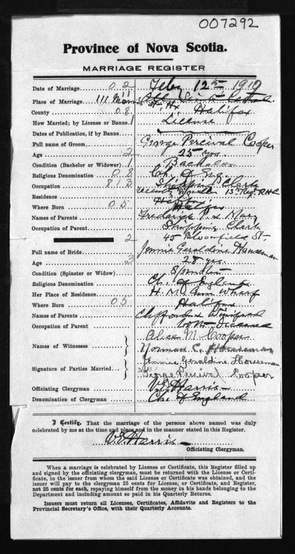 Registration: Year: 1919 number: 7292