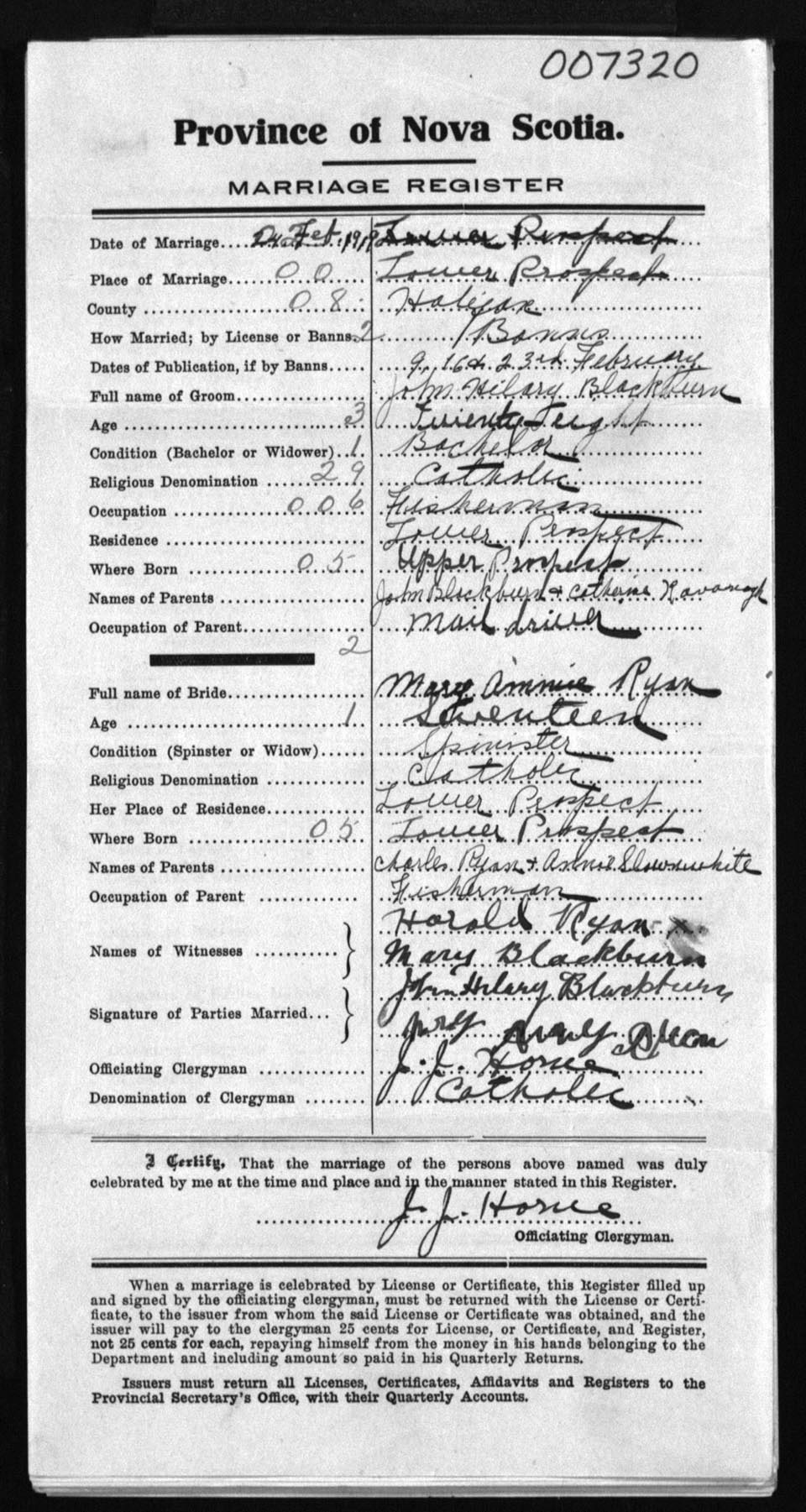 Registration: Year: 1919 number: 7320