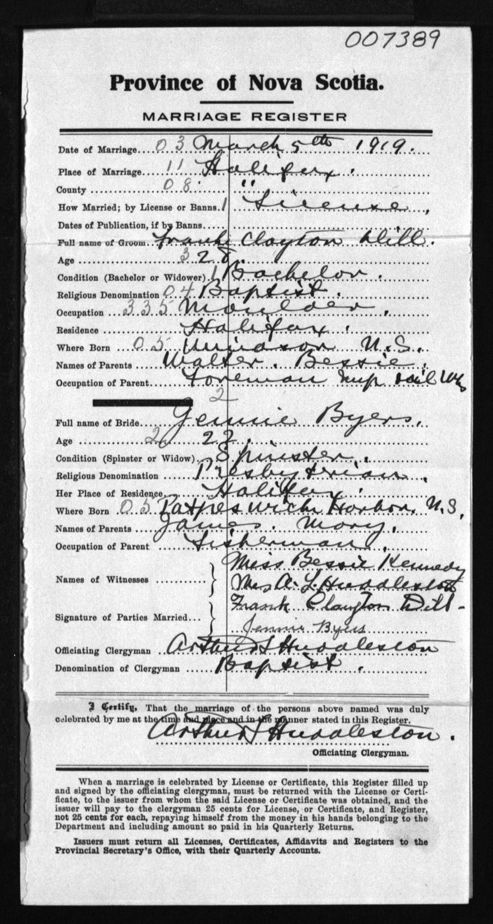 Registration: Year: 1919 number: 7389