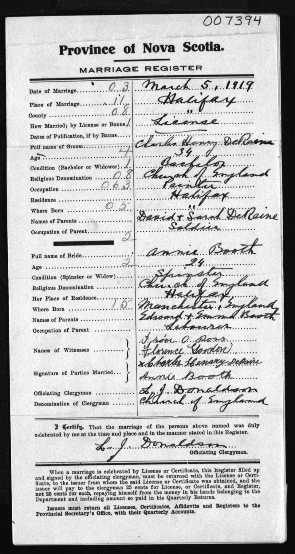 Registration: Year: 1919 number: 7394