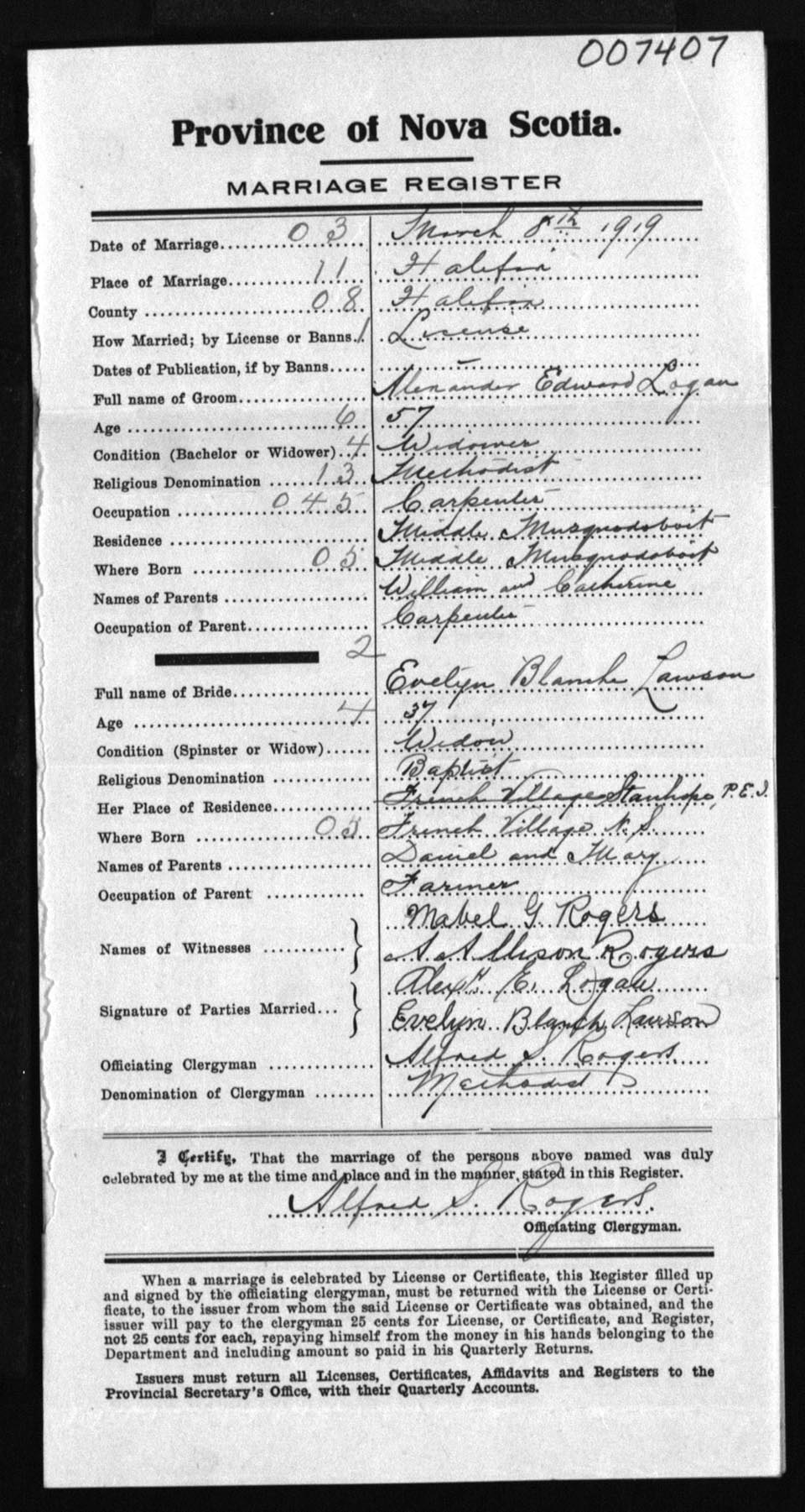 Registration: Year: 1919 number: 7407