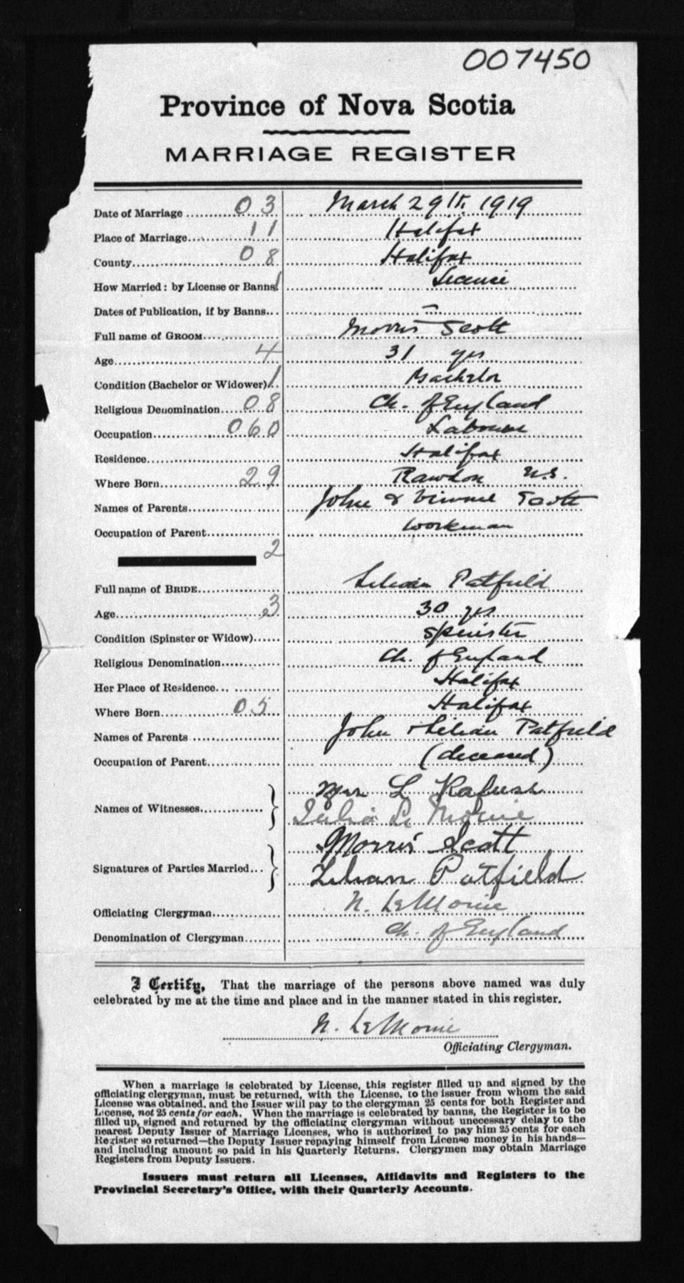 Registration: Year: 1919 number: 7450