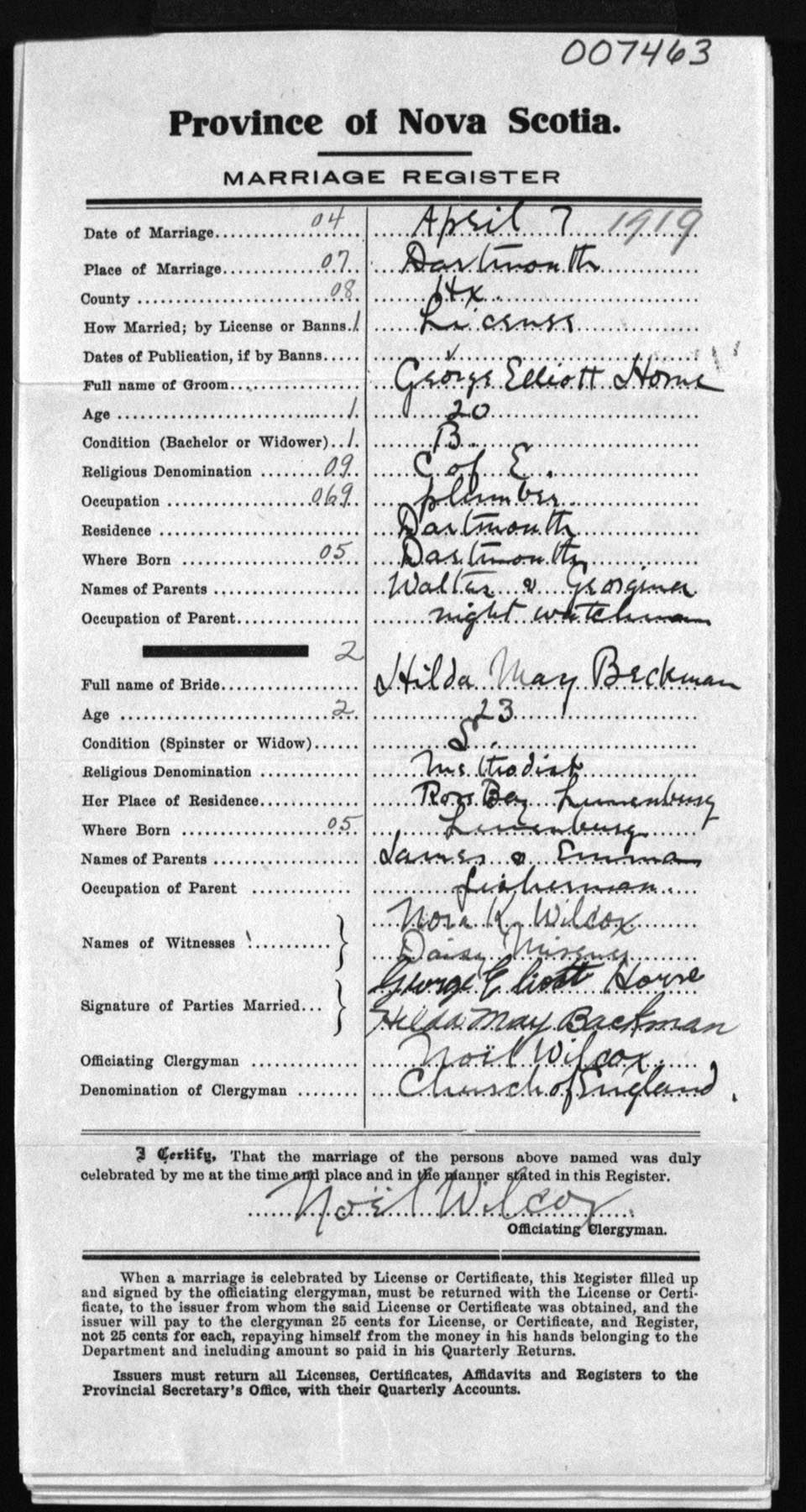 Registration: Year: 1919 number: 7463