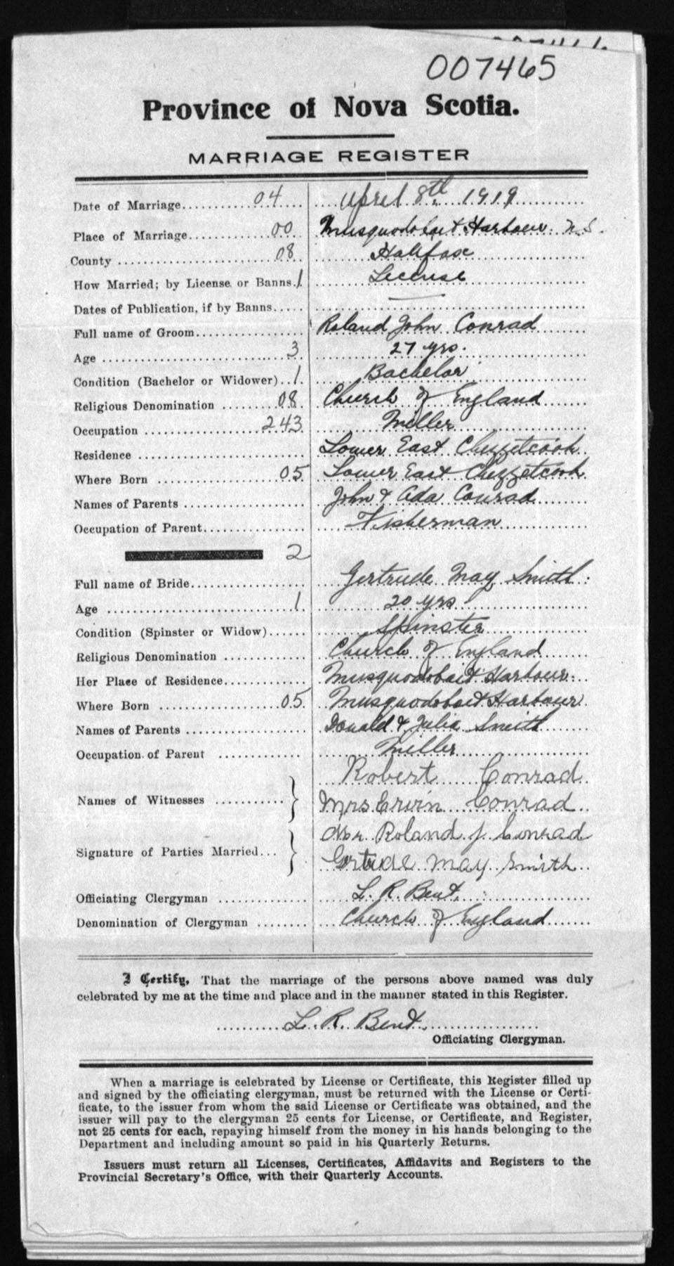 Registration: Year: 1919 number: 7465