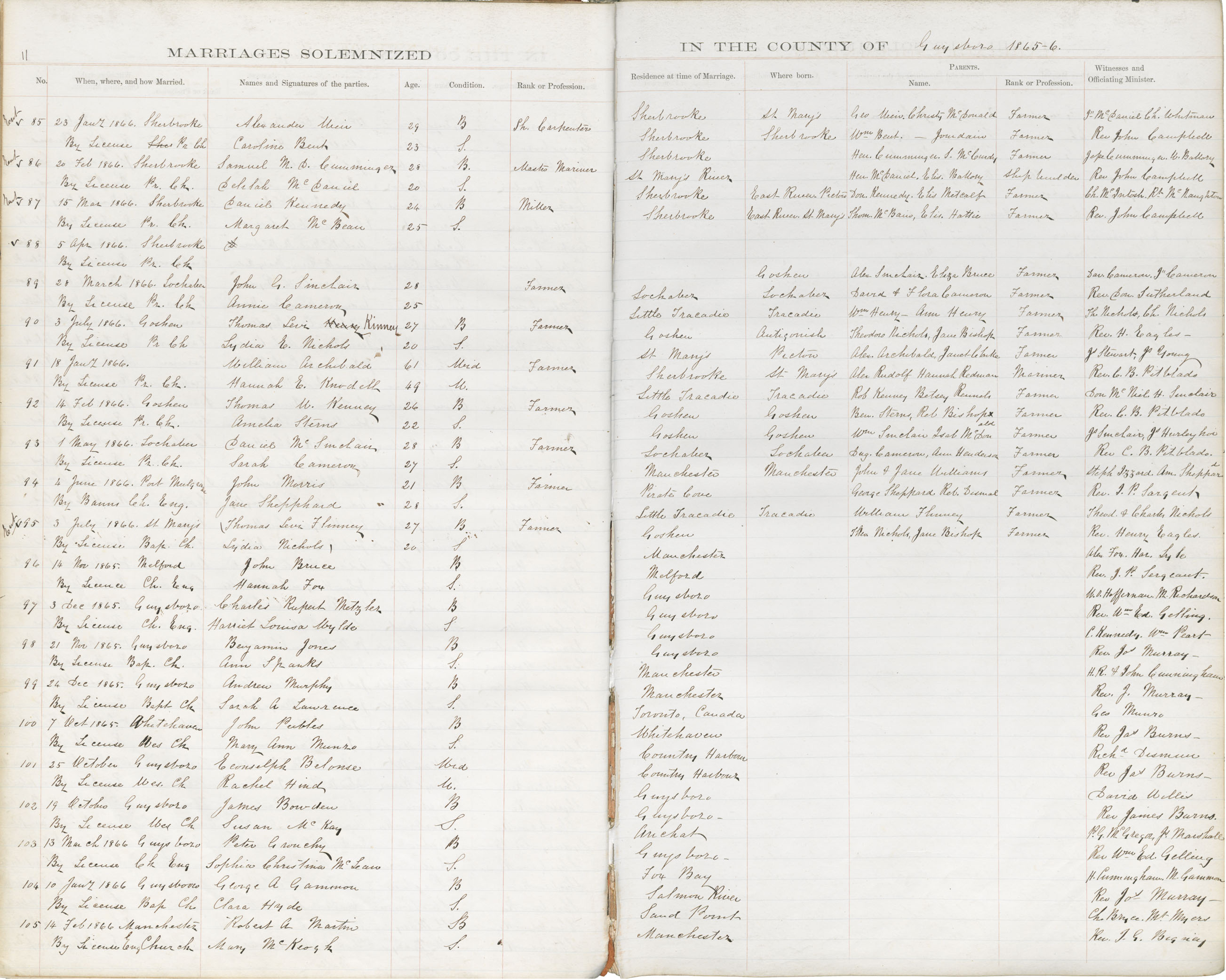 Registration: Year: 1866 book: 1814 page: 11 number: 85
