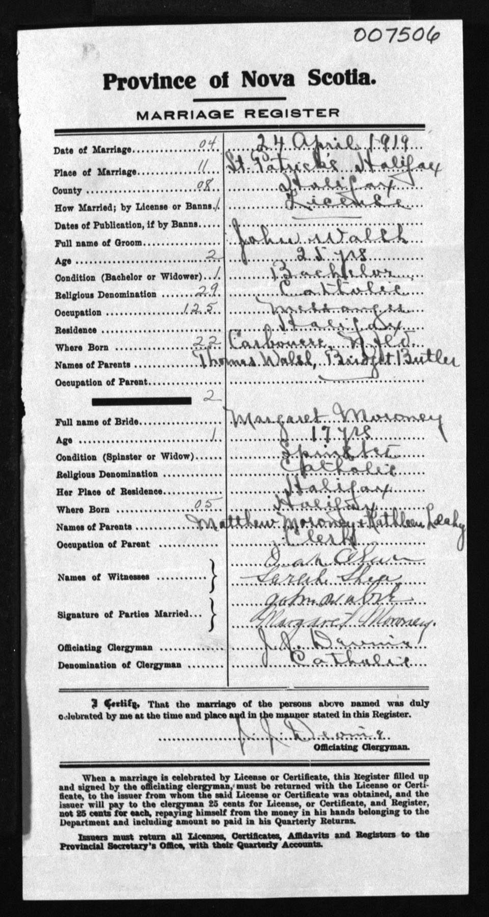 Registration: Year: 1919 number: 7506