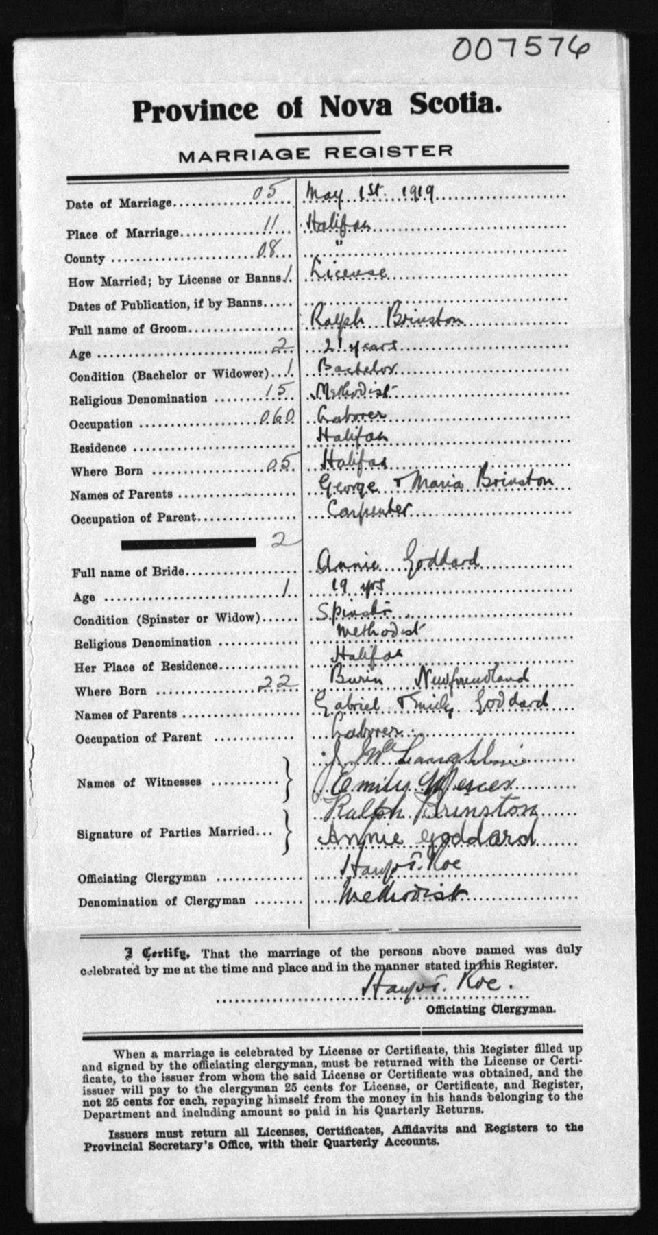 Registration: Year: 1919 number: 7576
