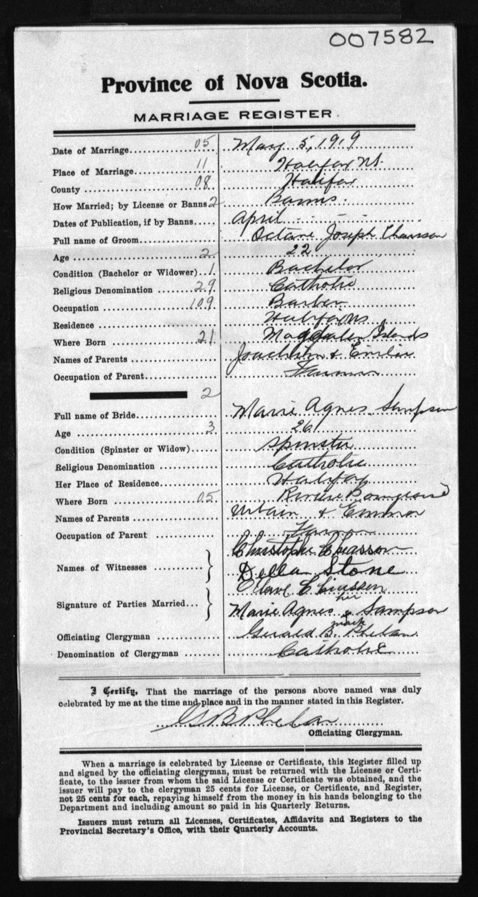 Registration: Year: 1919 number: 7582
