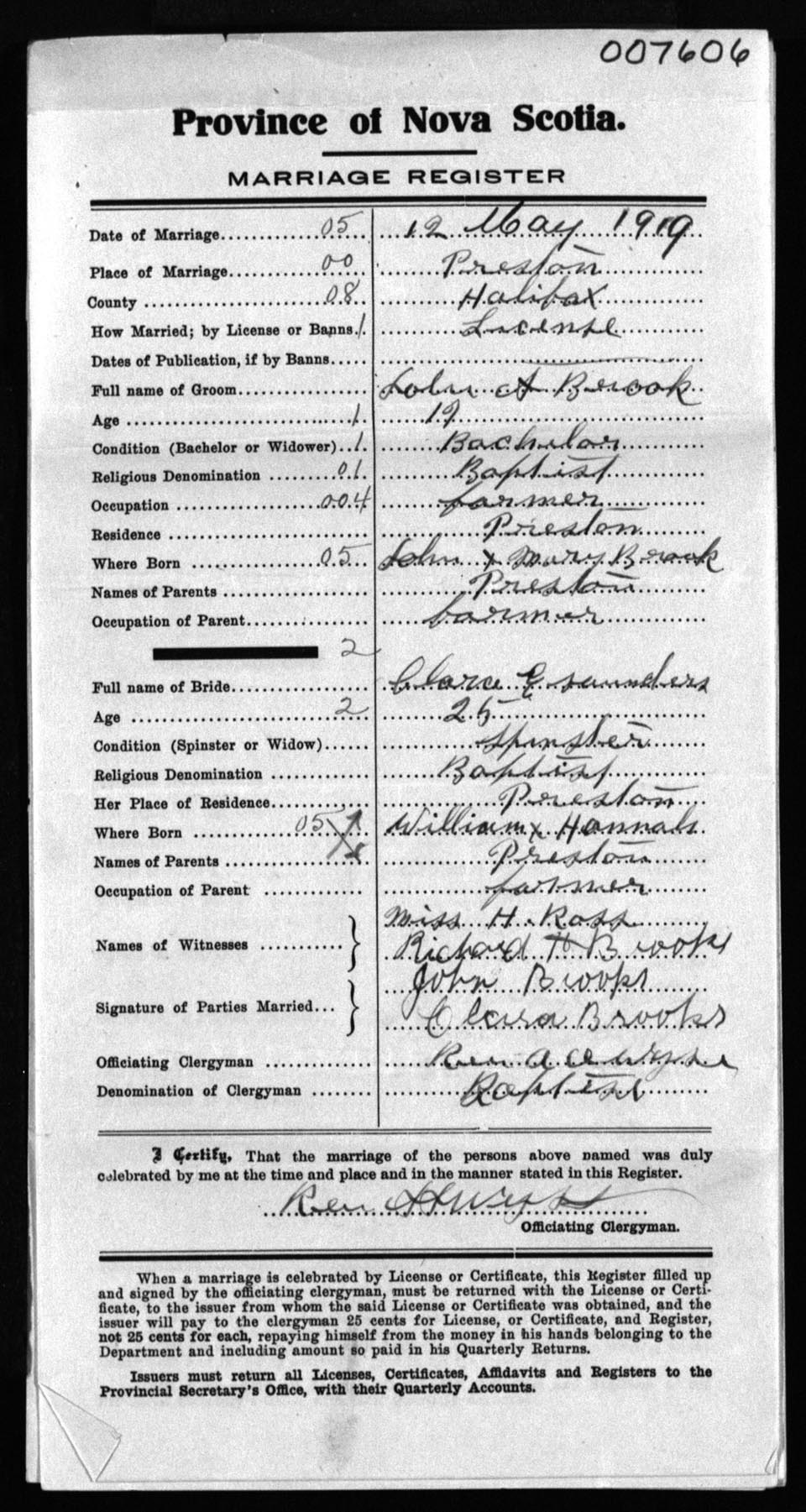 Registration: Year: 1919 number: 7606
