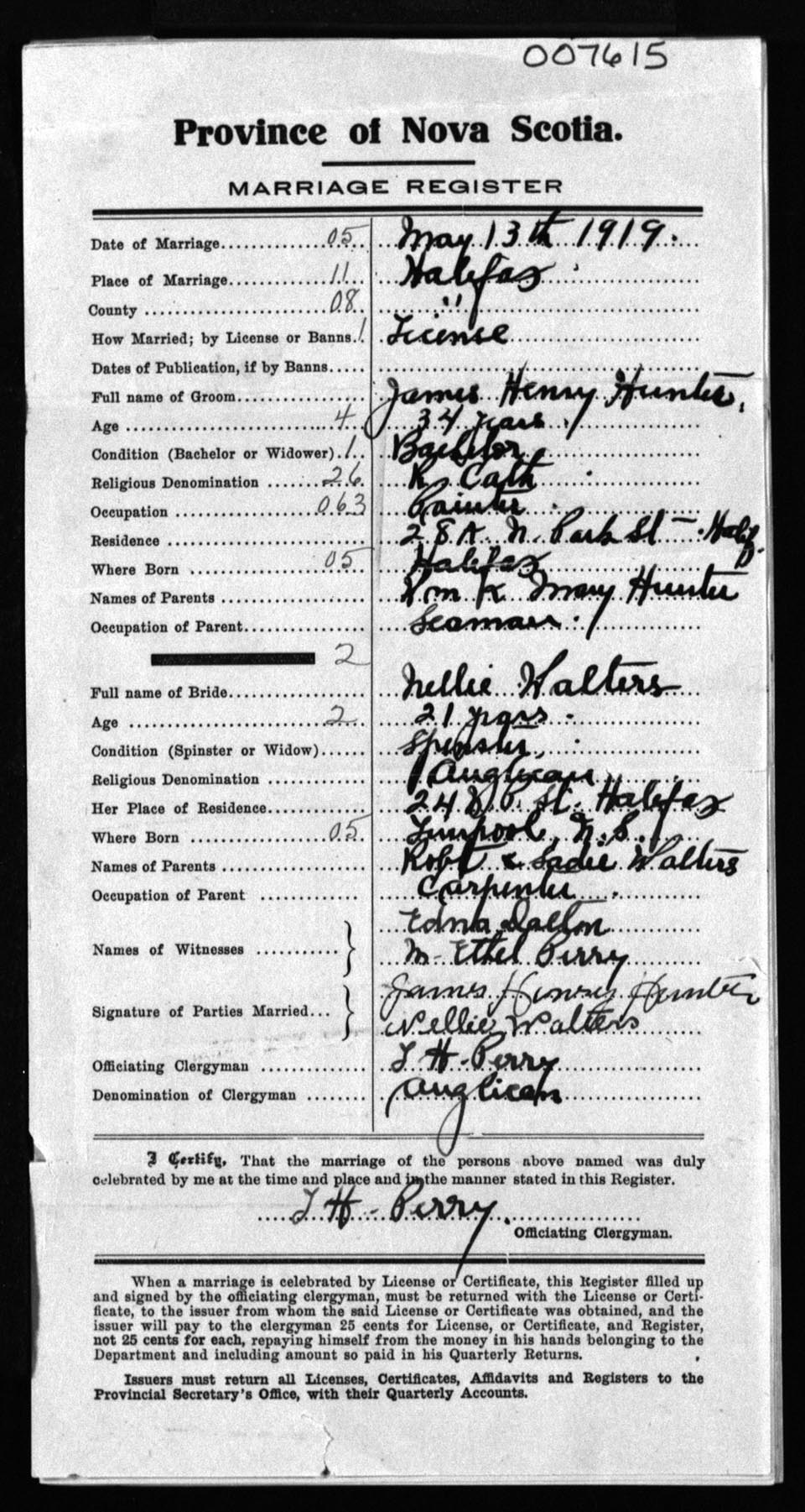 Registration: Year: 1919 number: 7615
