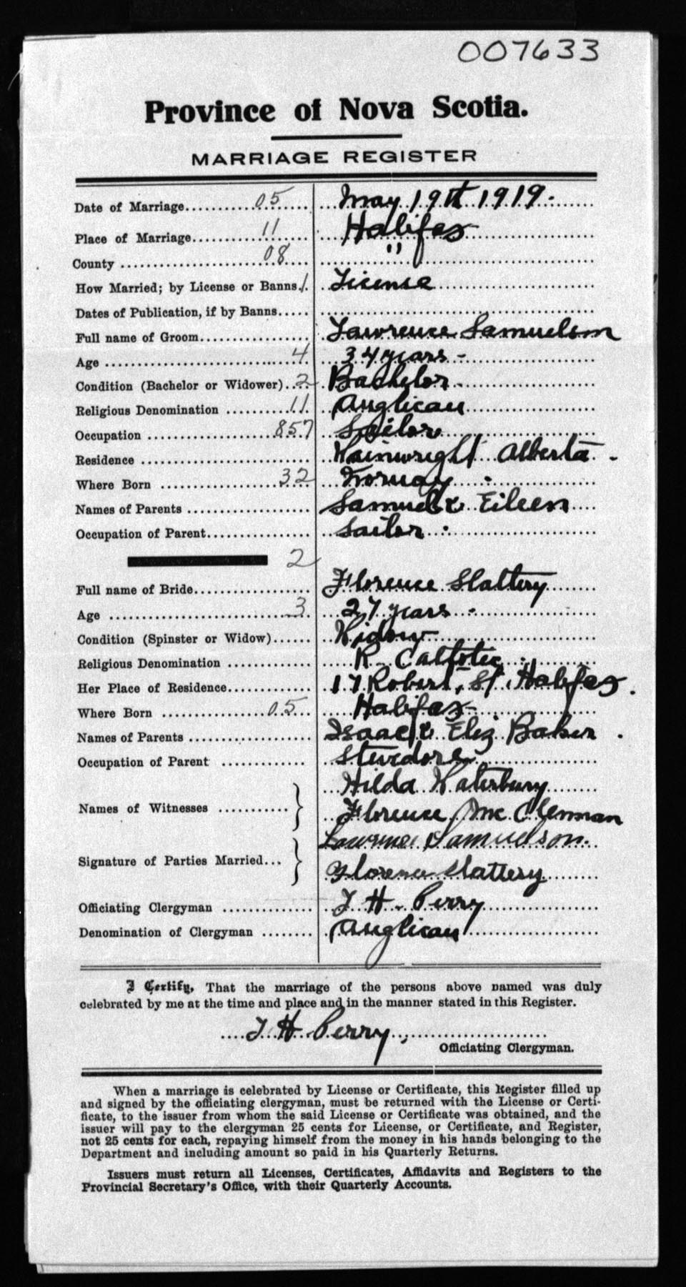Registration: Year: 1919 number: 7633