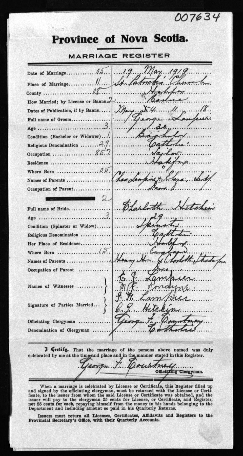 Registration: Year: 1919 number: 7634