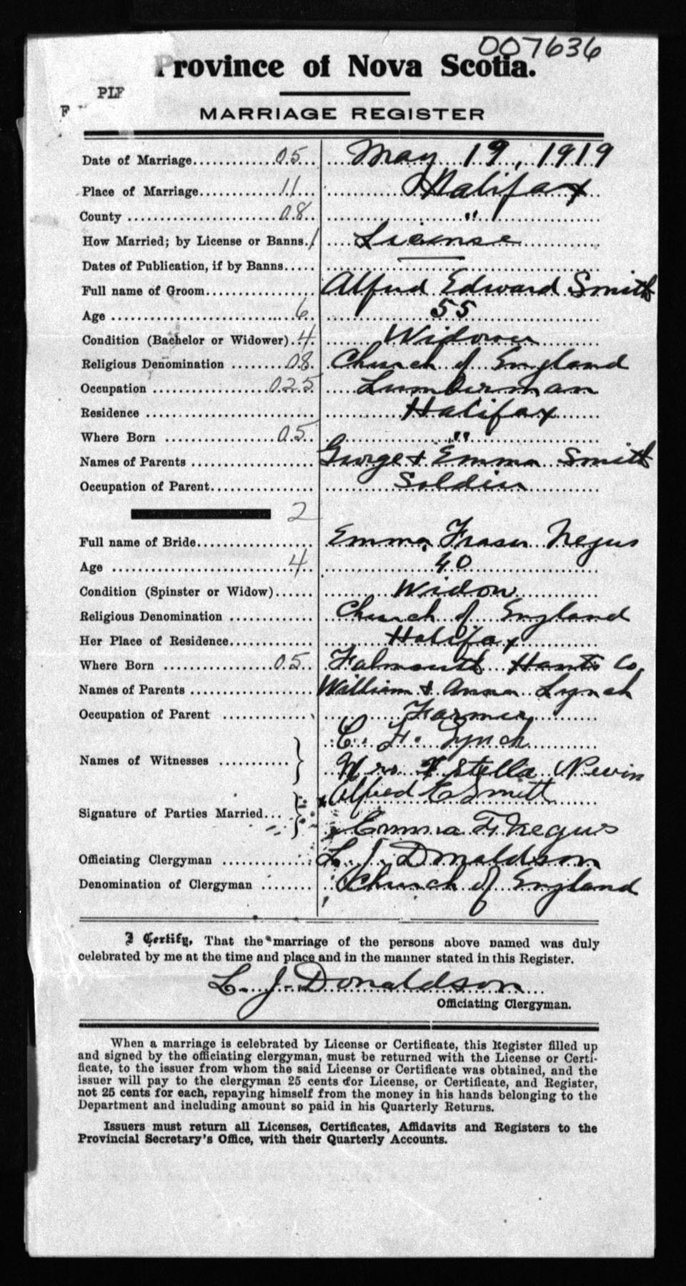 Registration: Year: 1919 number: 7636