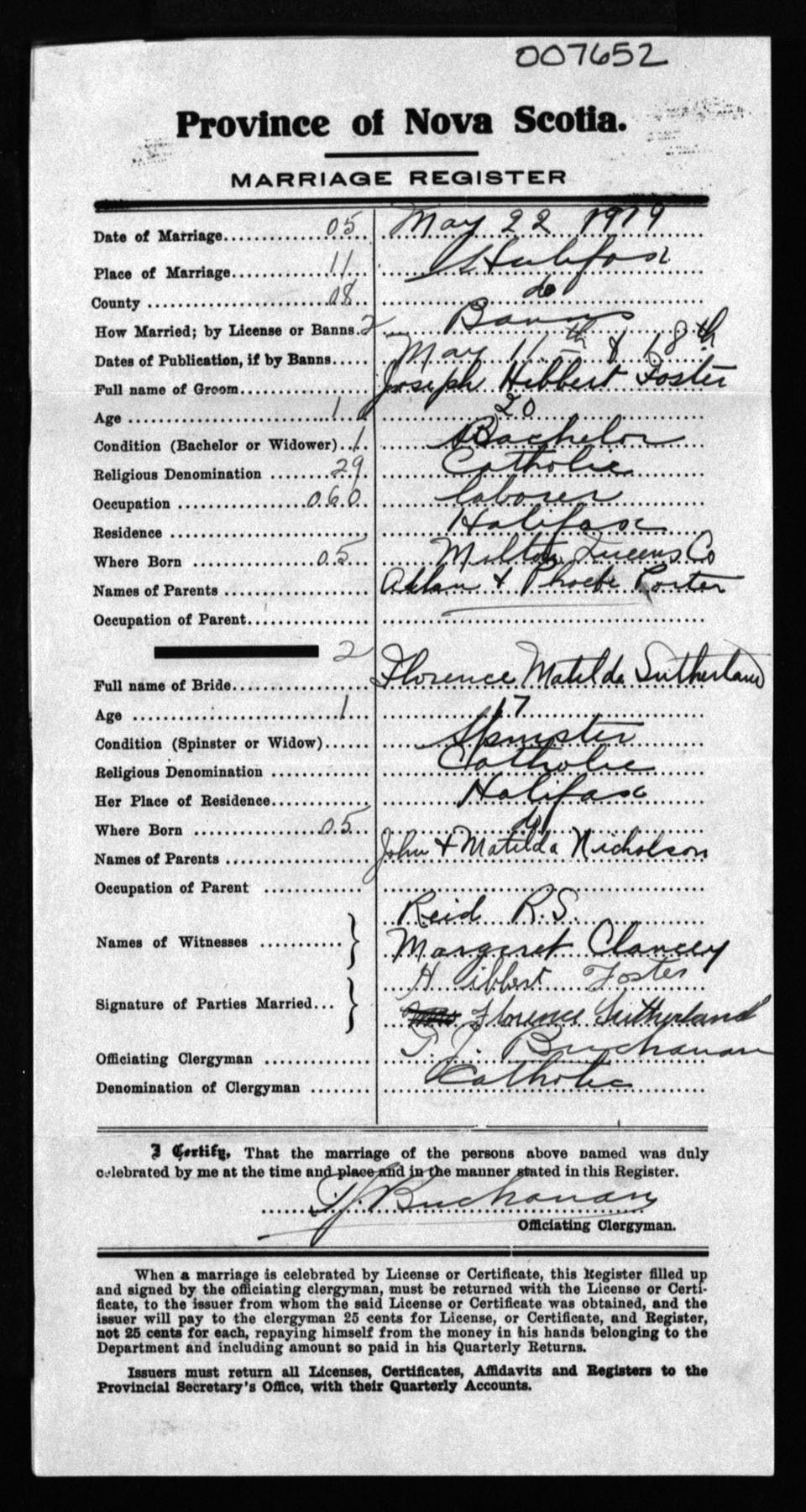 Registration: Year: 1919 number: 7652