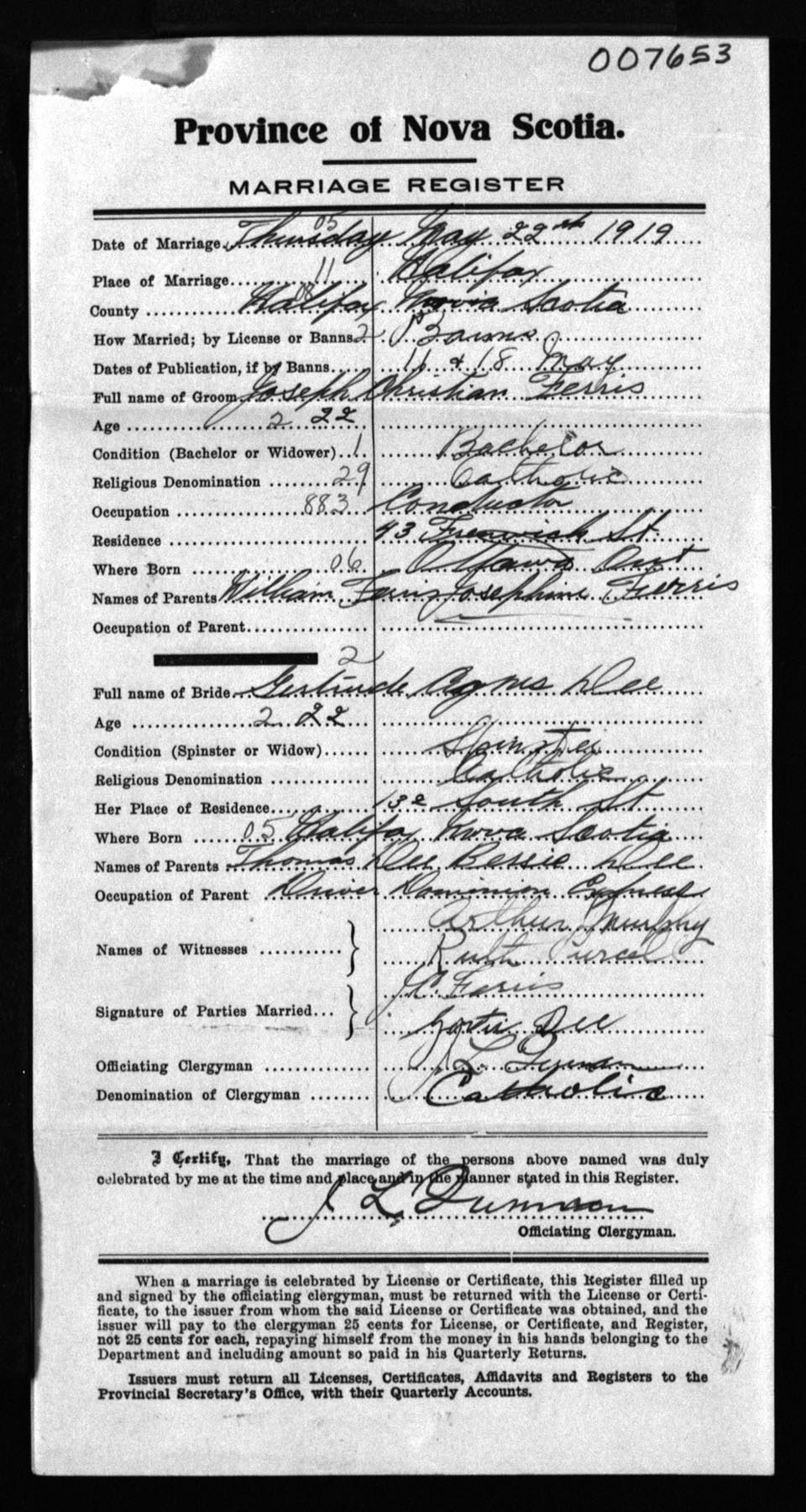 Registration: Year: 1919 number: 7653