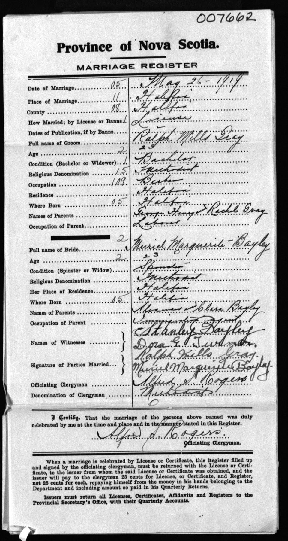 Registration: Year: 1919 number: 7662