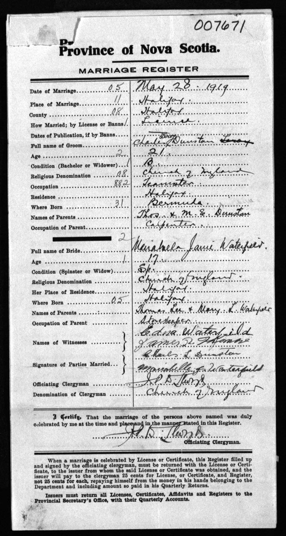 Registration: Year: 1919 number: 7671