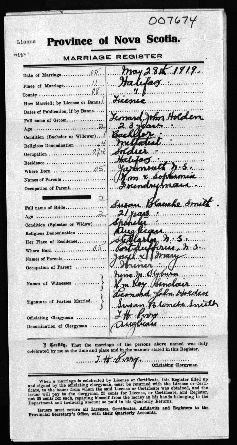 Registration: Year: 1919 number: 7674