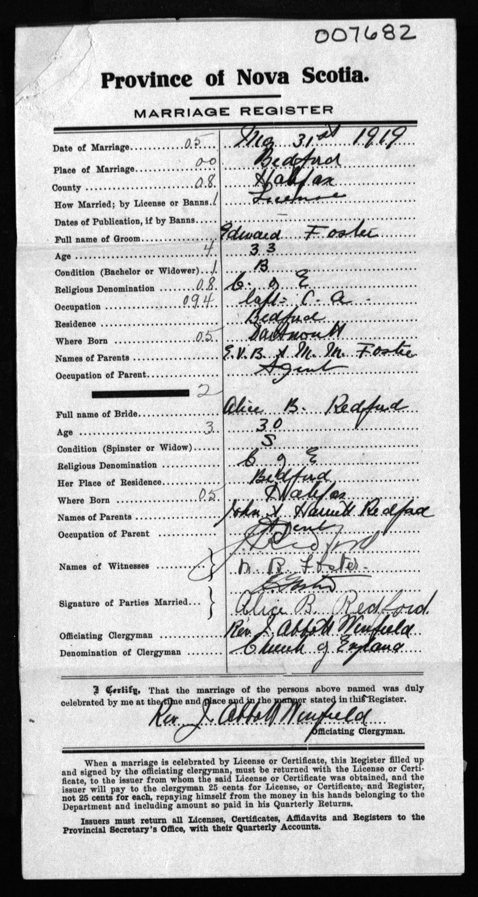 Registration: Year: 1919 number: 7682