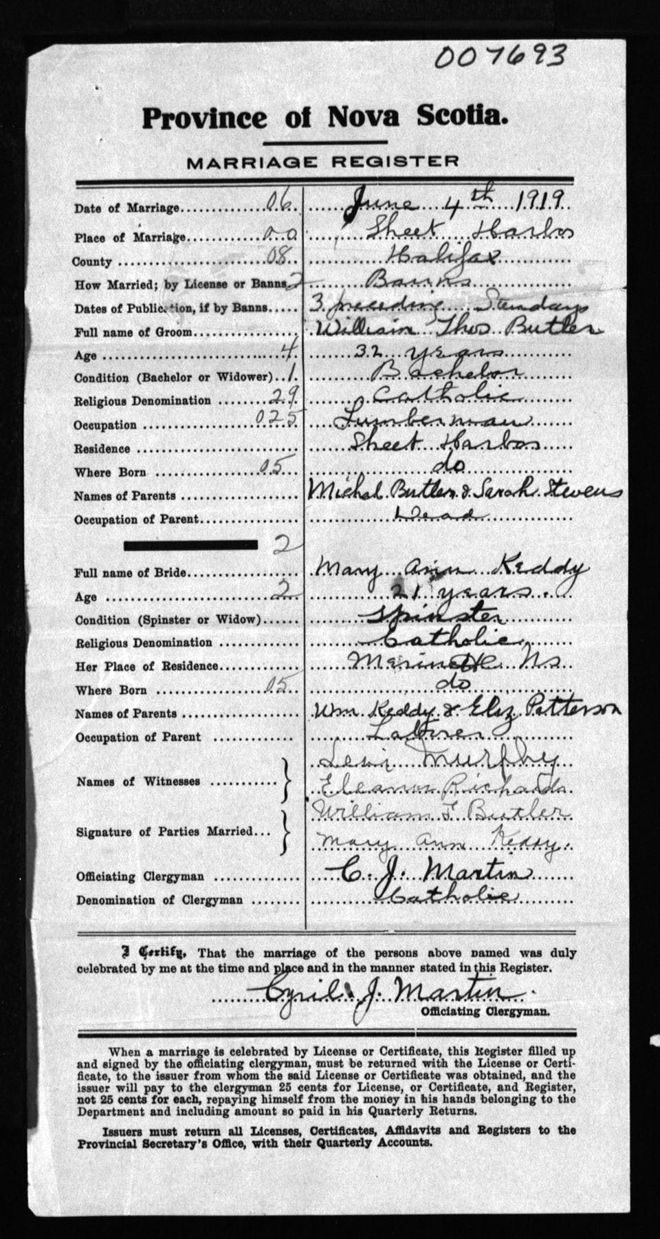 Registration: Year: 1919 number: 7693