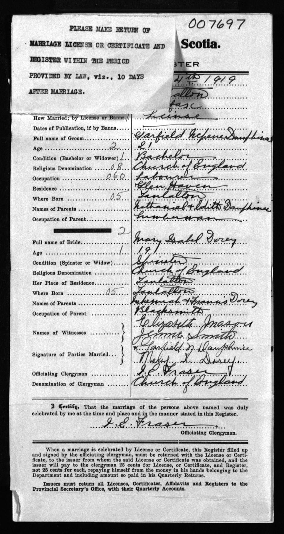 Registration: Year: 1919 number: 7697