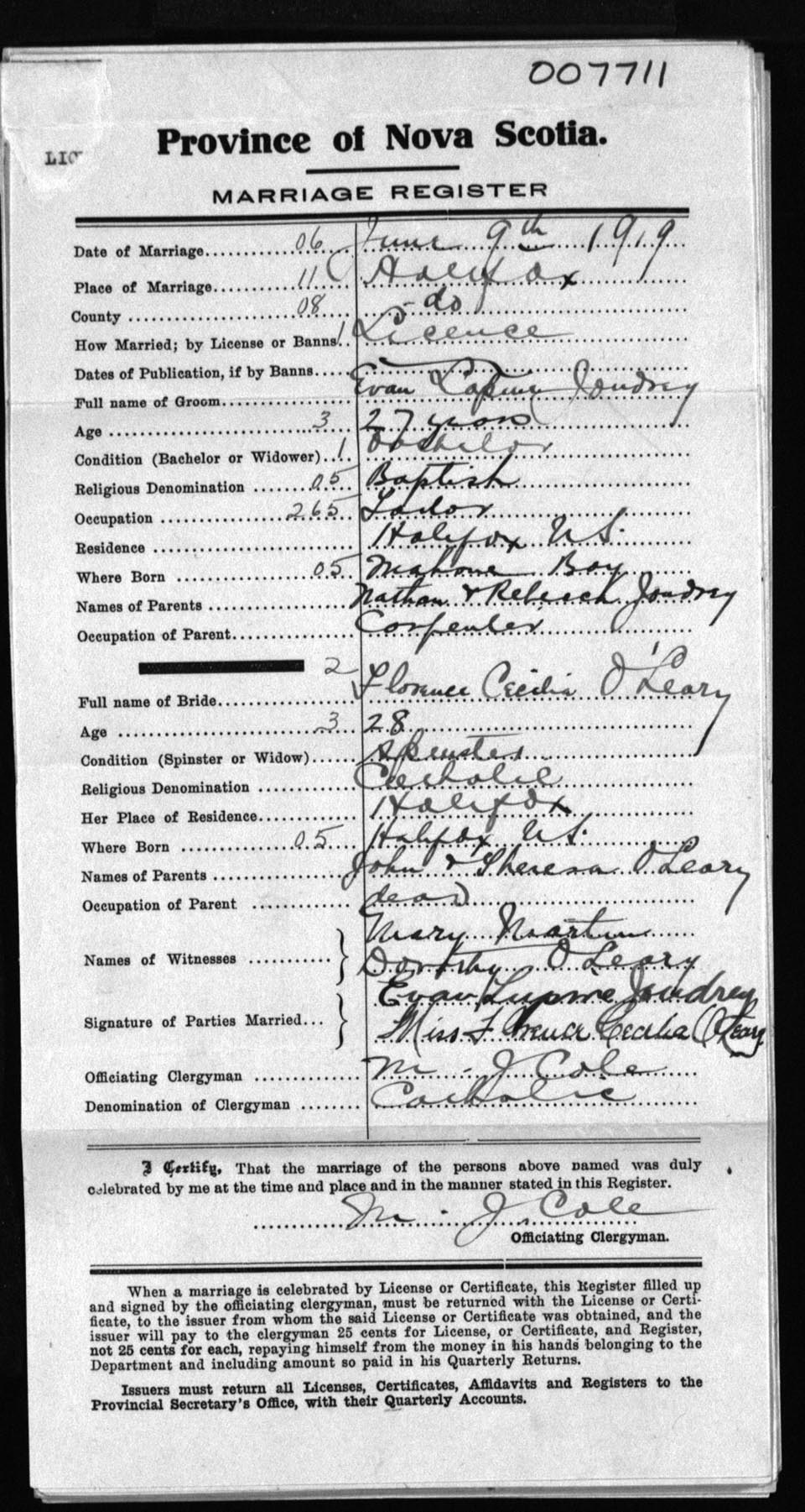 Registration: Year: 1919 number: 7711