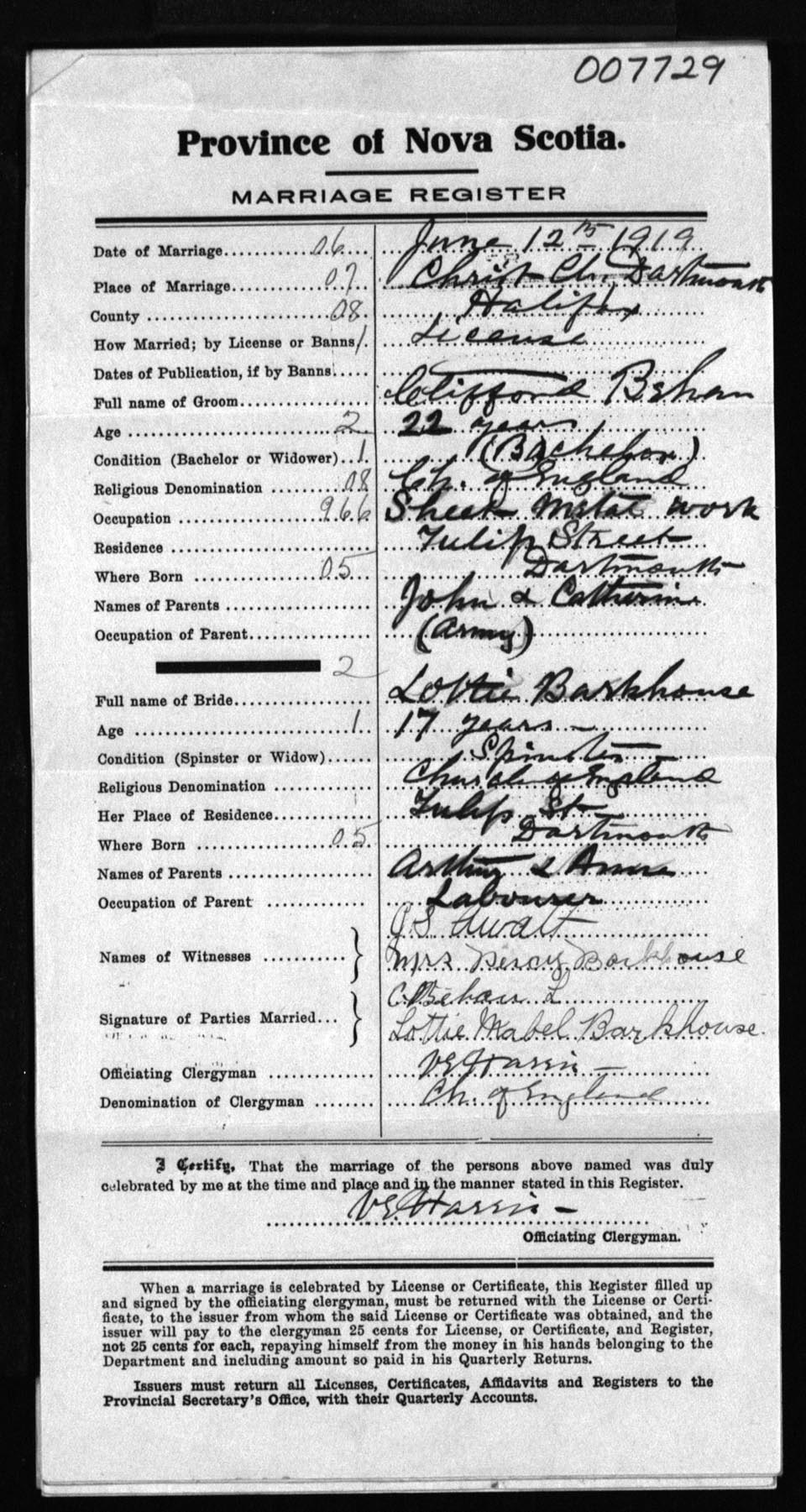 Registration: Year: 1919 number: 7729