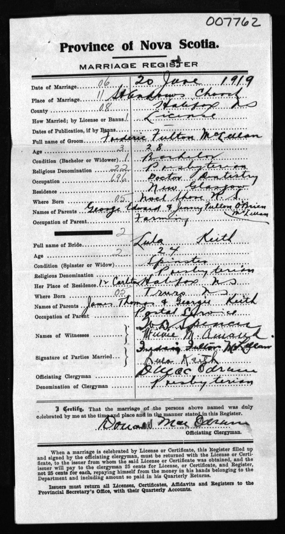Registration: Year: 1919 number: 7762